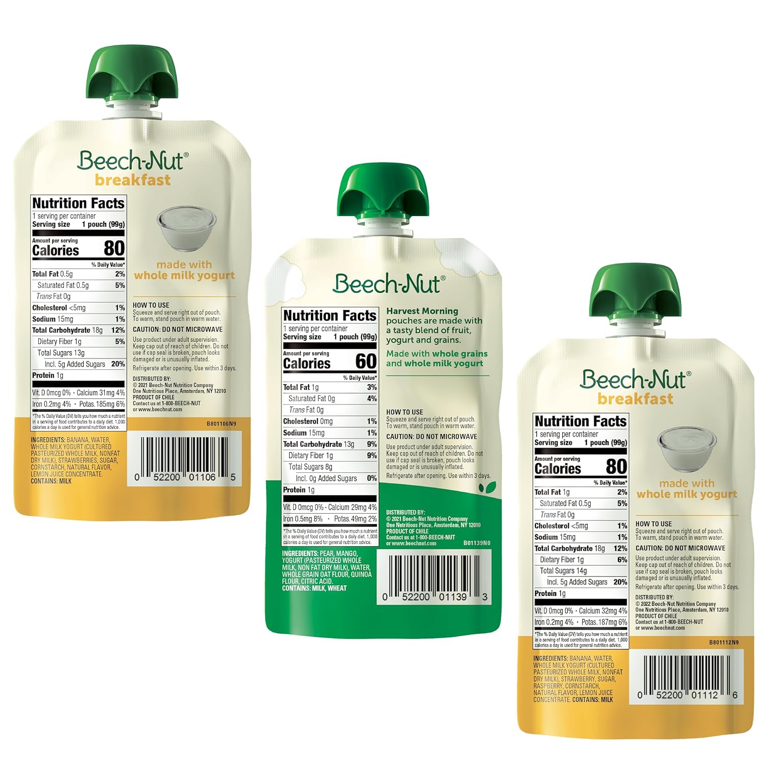 Delicious Breakfast Variety Pack: This Variety Pack Contains (6) Yogurt, Banana & Strawberry, (6) Yogurt, Banana & Mixed Berry, And (6) Pear, Mango, Yogurt & Granola Baby Food Pouches. Each Pouch Contains One Full Serving Of Fruits Or Veggies, Making It Easy To Squeeze More Nutrition Into Your Little One'S Day