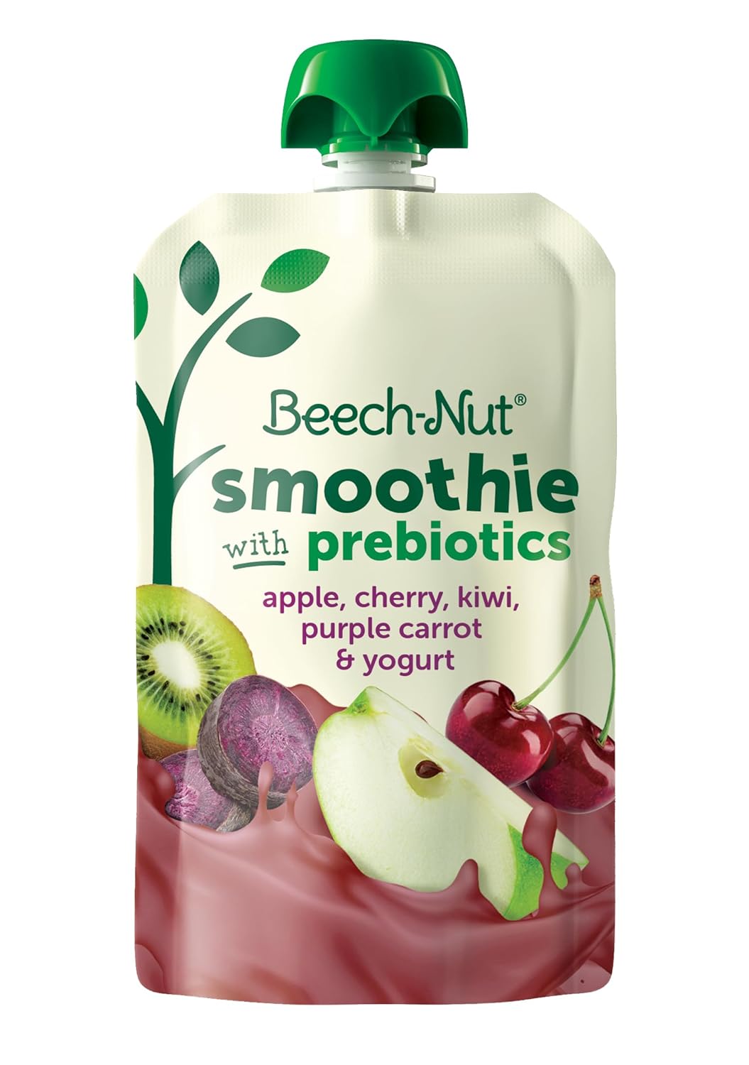 Beech-Nut Toddler Smoothies With Prebiotics, Apple Cherry Kiwi Purple Carrot & Yogurt Baby & Toddler Food Pouches, 3.5 Oz (12 Pack)