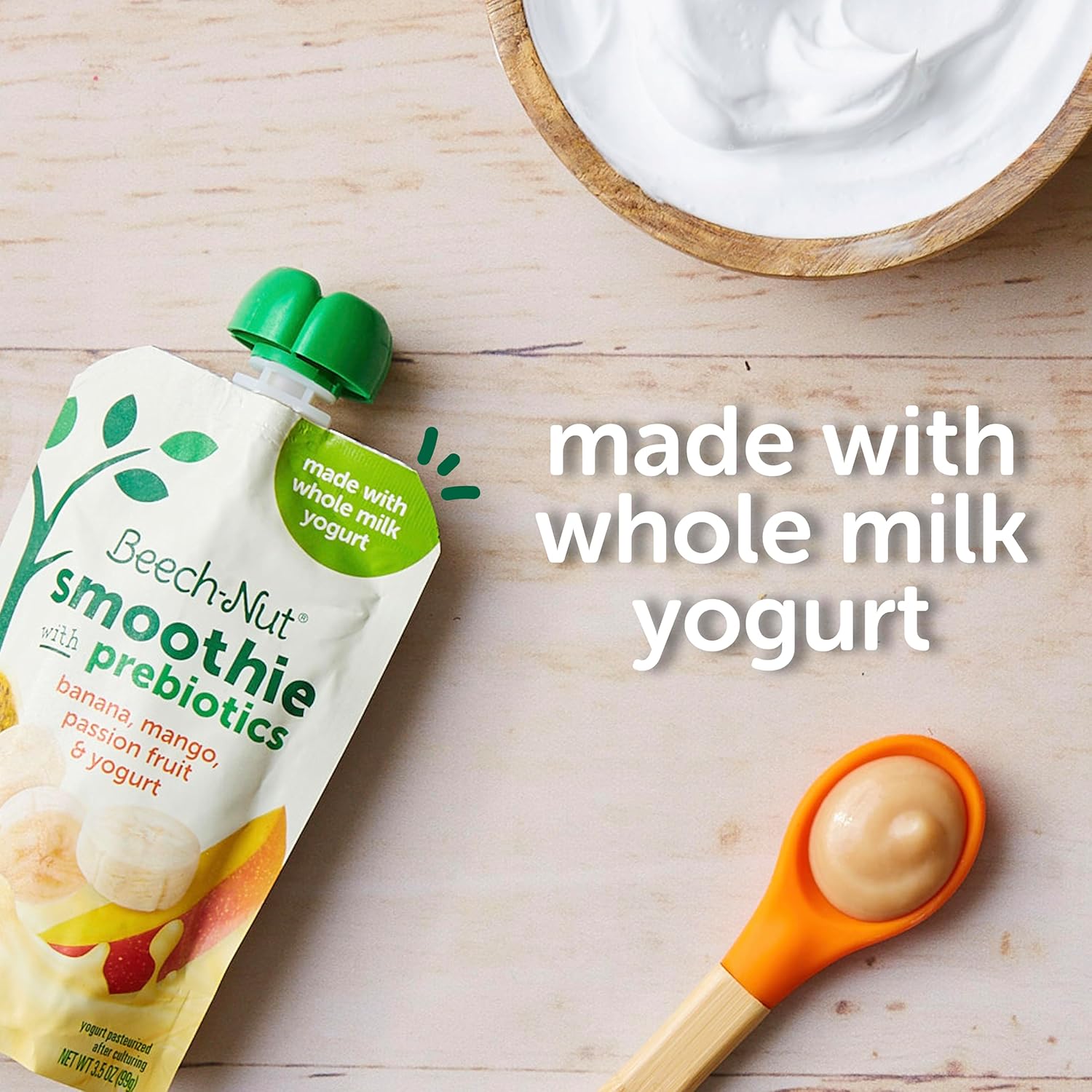 PREBIOTICS TO SUPPORT GUT HEALTH: Beech-Nut Smoothies are made with whole milk yogurt and prebiotics to help support your toddler's gut health & digestion