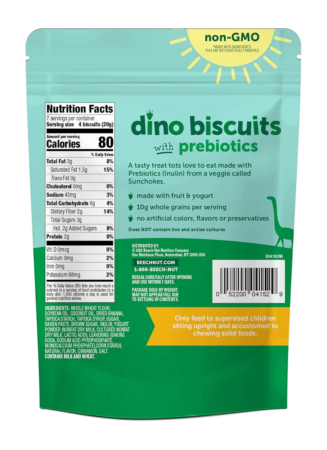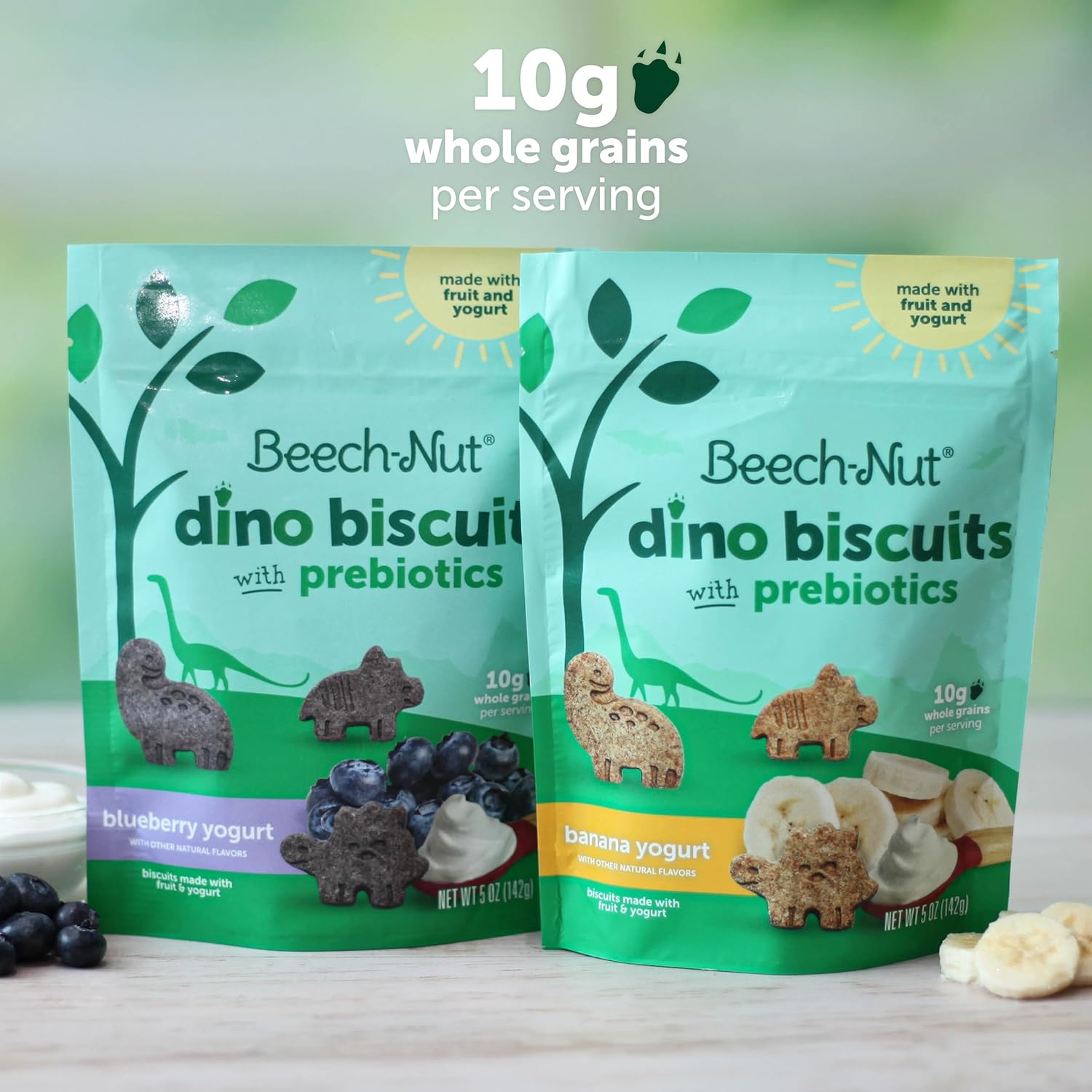 Beech-Nut Toddler Snacks, Dino Biscuits With Prebiotics, Banana Yogurt, Non-Gmo Baked Snack For Kids, 5 Oz Bag (7 Pack)
