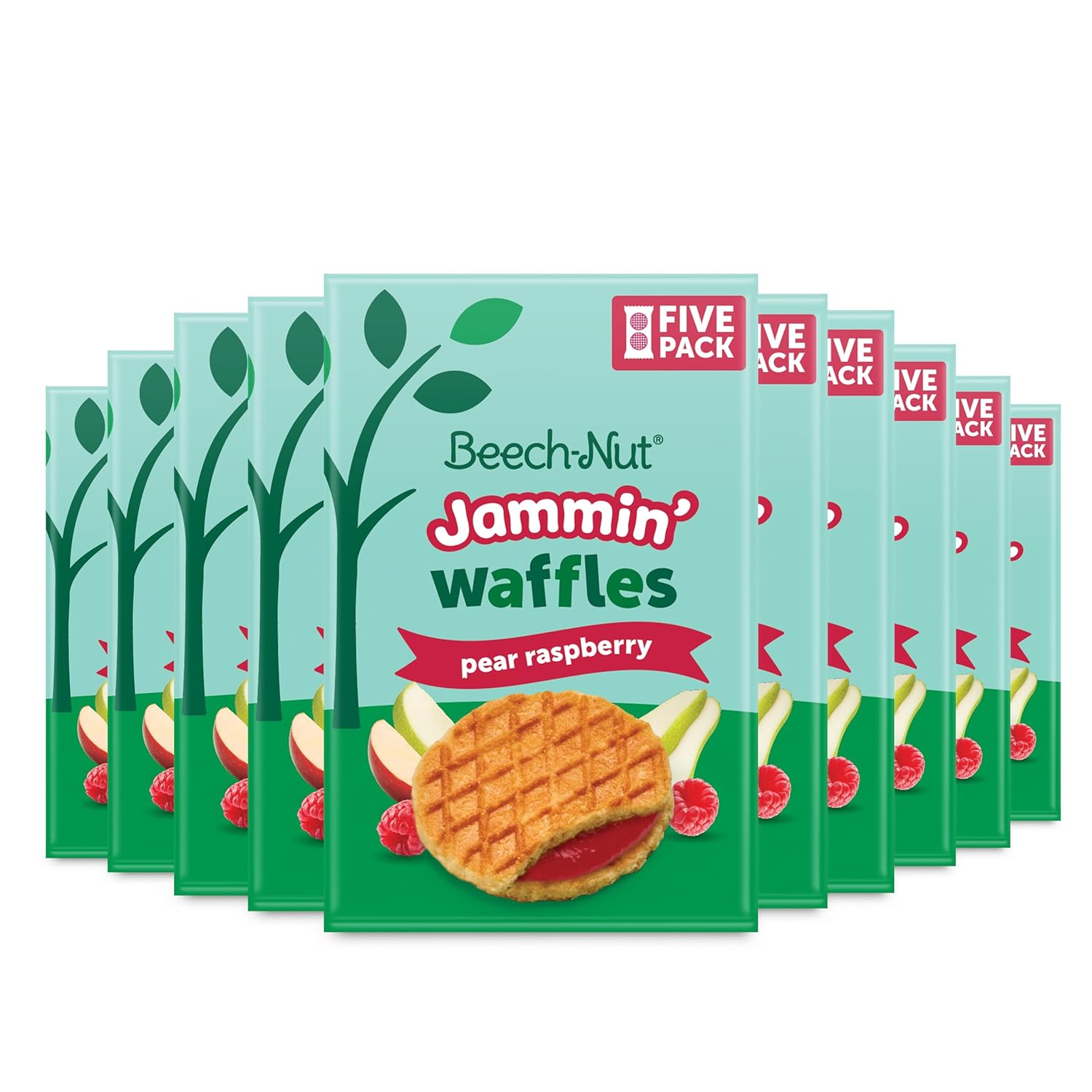 Beech-Nut Toddler Snacks Jammin' Waffles With Fruit Filling For Babies & Toddlers, Pear Raspberry, 10 Boxes (50 Individually Wrapped Packs)