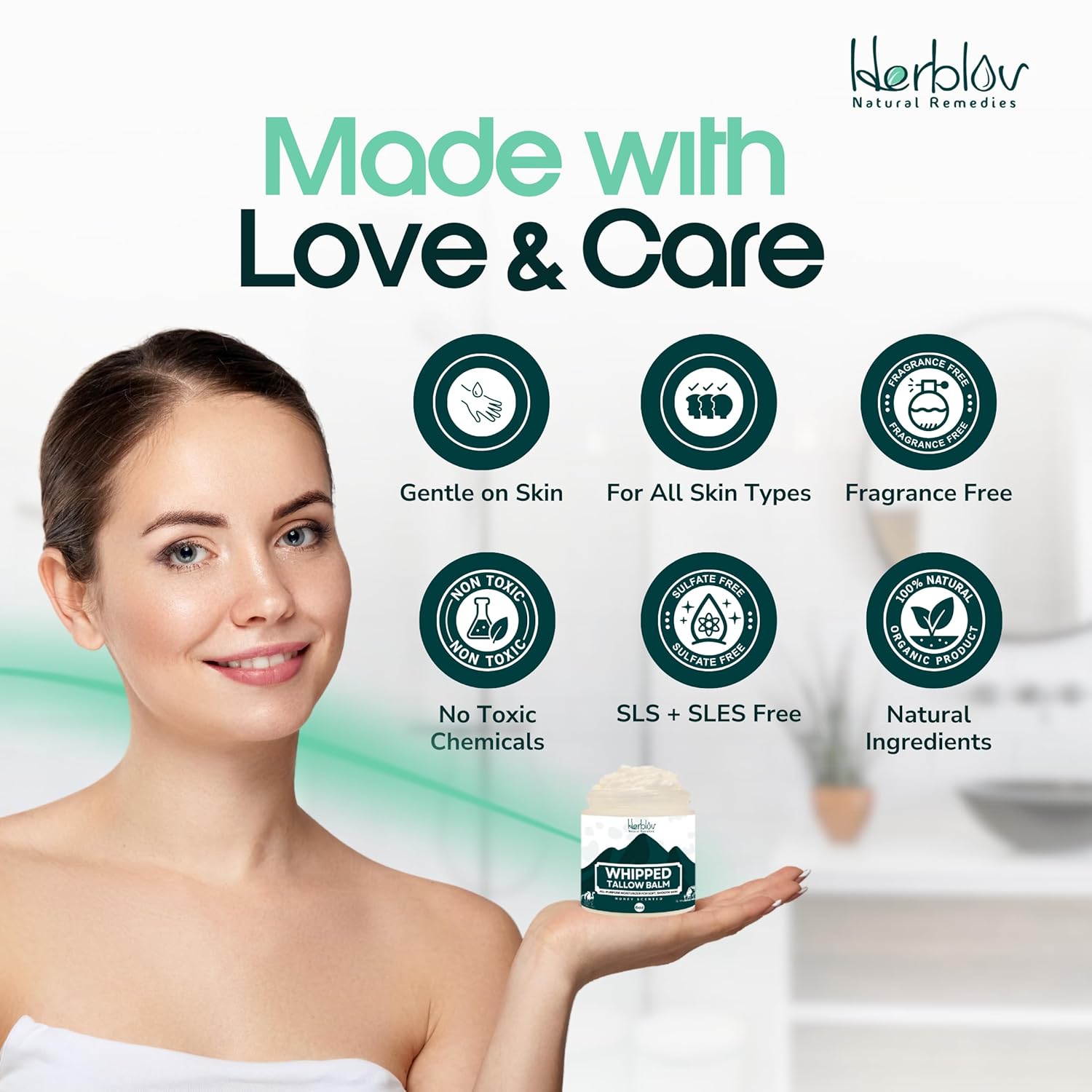NATURAL BEEF TALLOW FACE MOISTURIZER: Elevate your skincare routine with this pure face and body lotion that hydrates and soothes, offering relief for dry skin and eczema while enhancing skin health