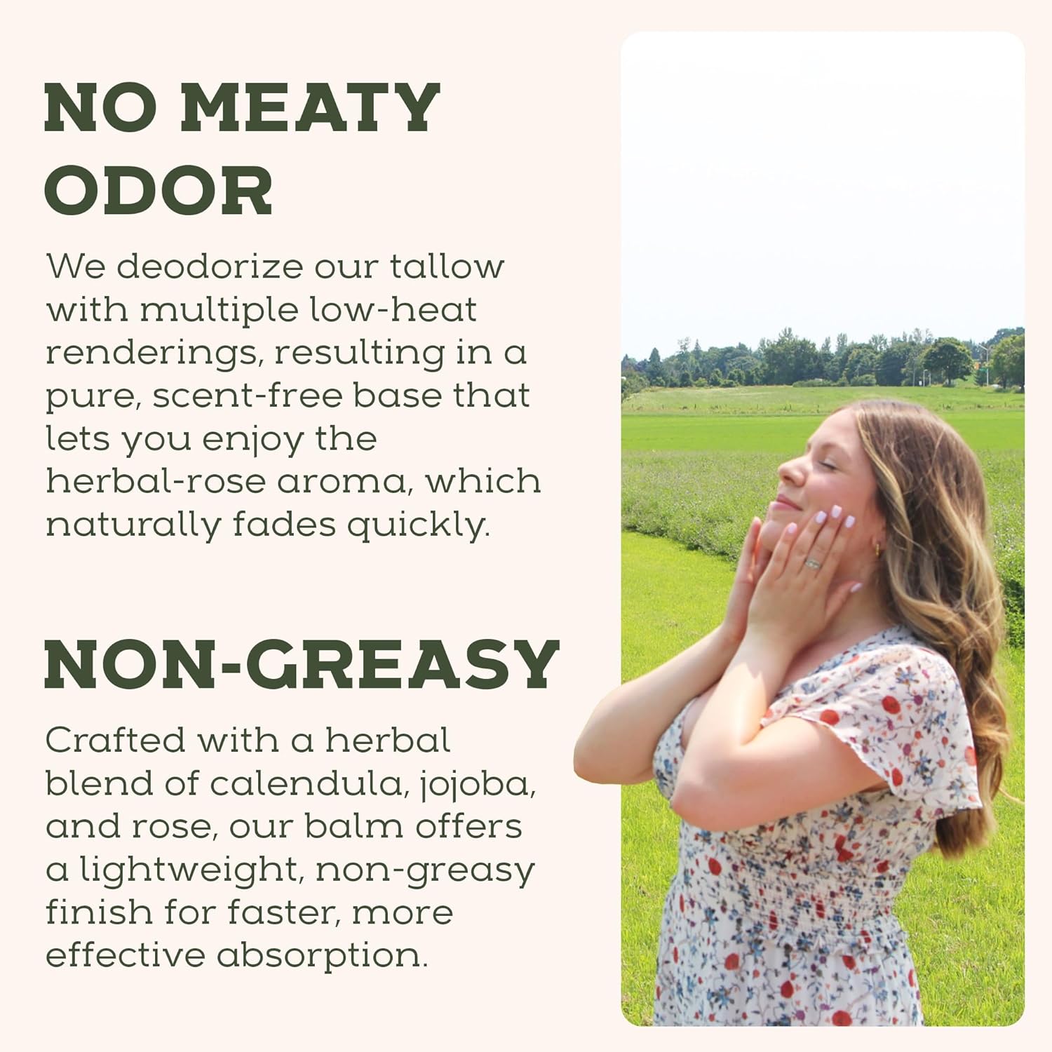 Beef Tallow For Skin - Beef Tallow For Face - Tallow Face Moisturizer - Beef Tallow Moisturizer - Tallow Balm - Grass Fed Beef Tallow For Skin - Tallow Face Cream Lotion (5.0, Herbal-Rose)