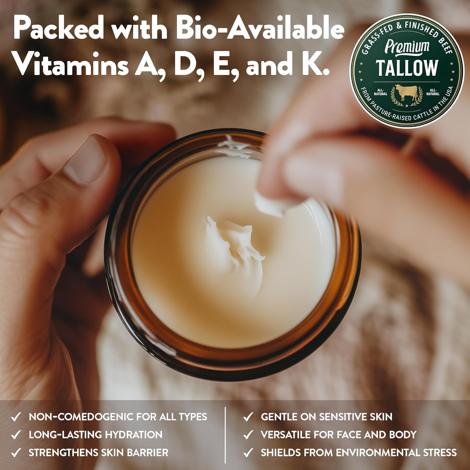 Beef Tallow For Skin Care - 100% Grass Fed Grass Finished With Organic Jojoba, Prickly Pear, Rosehip, Tamanu Oils, Neroli, Vanilla & Manuka Honey