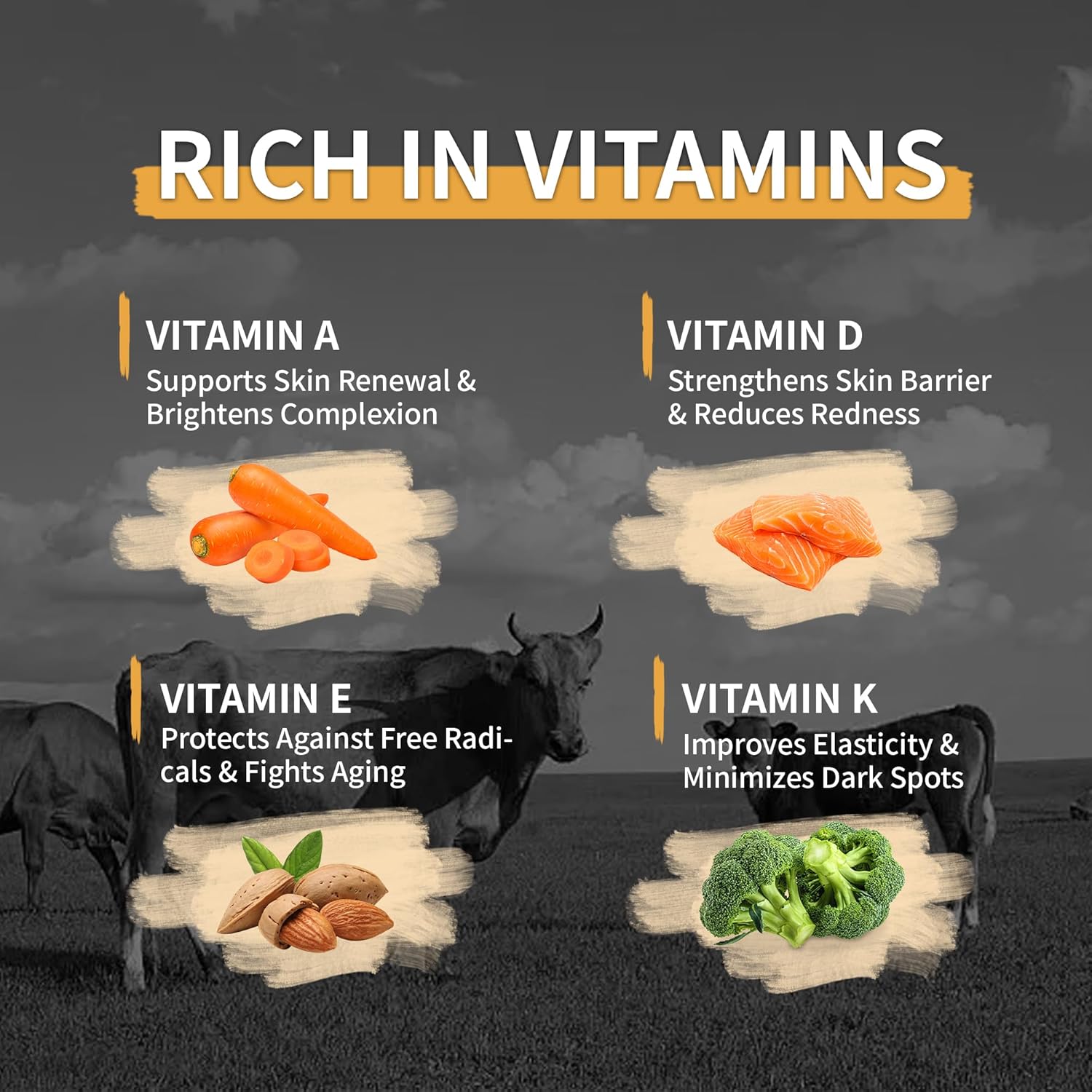 VITAMIN ENRICHED: Our beef tallow for skin is enriched with many of the vitamins your skin needs, tallow and honey cream including Vitamins A, D, E, K, and B12, to give your skin a multi-faceted nutritional boost
