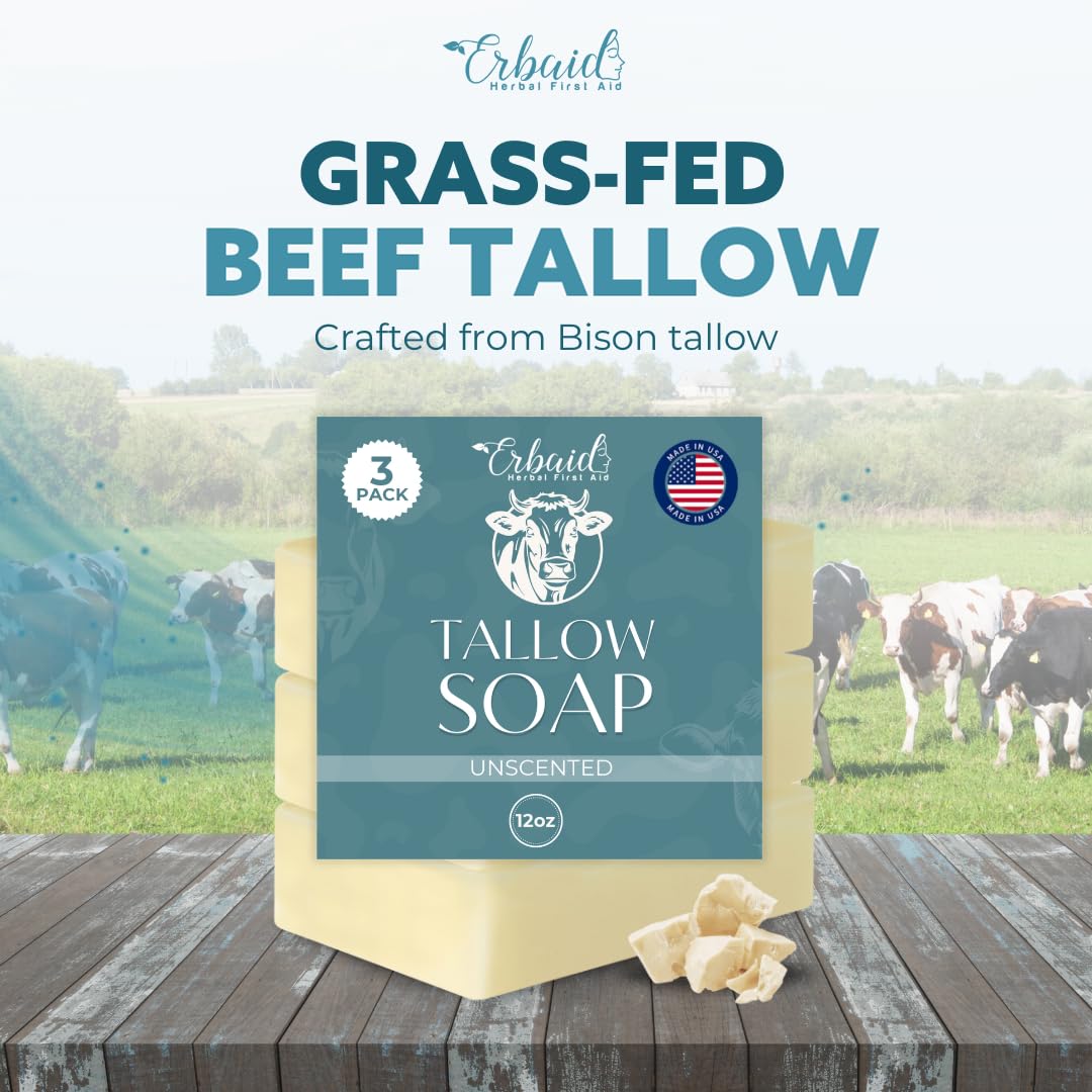Beef Tallow Soap Bar – All Natural Grass Fed Tallow Soap Unscented – Moisturizing Face & Body Wash Great For Eczema, Dry, Itchy, Sensitive Skin – Handcrafted Bath Soap For Adults, Kids, Made In Usa