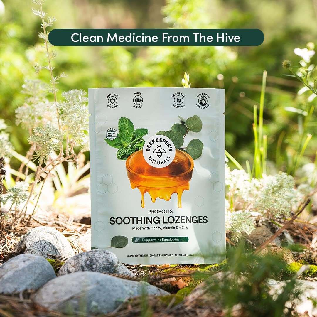 Beekeeper'S Naturals Soothing Mint Eucalyptus Cough Drops, Immune Support With Vitamin D, Zinc And Propolis, Cooling & Throat Soothing Lozenges, 14 Ct