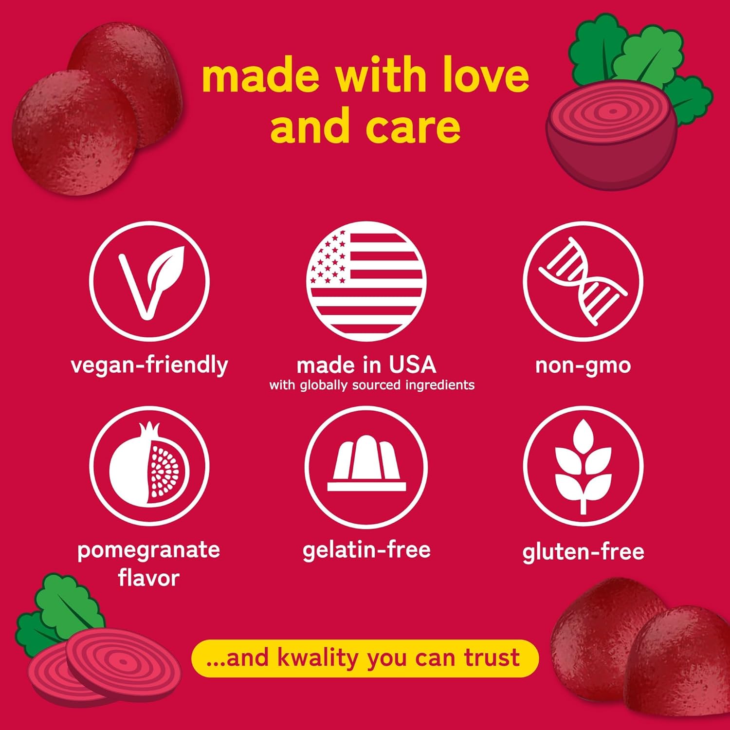 Tastes Great & Easy To Take. Enjoy The Delicious Pomegranate Flavor Of These Beets Supplements. These Beetroot Gummies Are Easy To Chew And Convenient To Take Wherever You Go. Just Take 2 Gummies Per Day For Your Daily Boost Of Beets