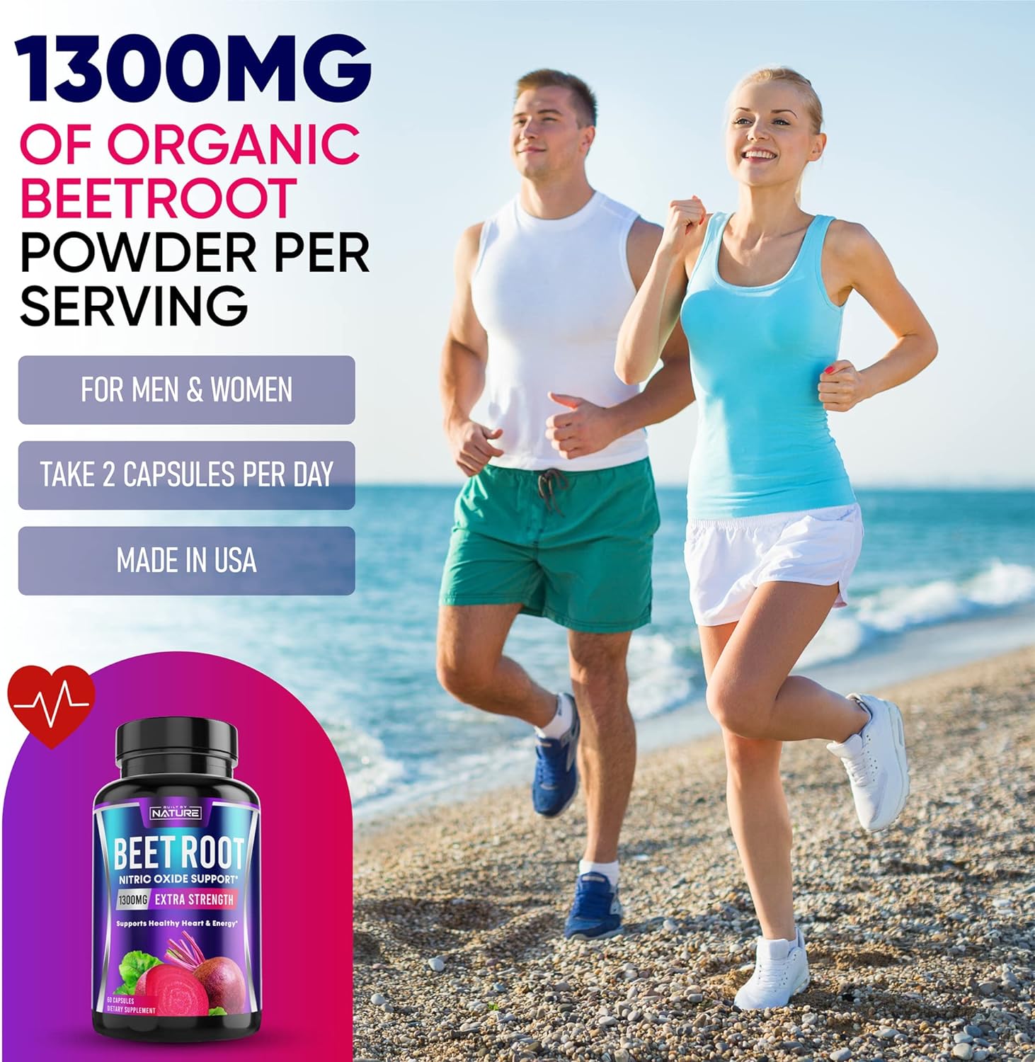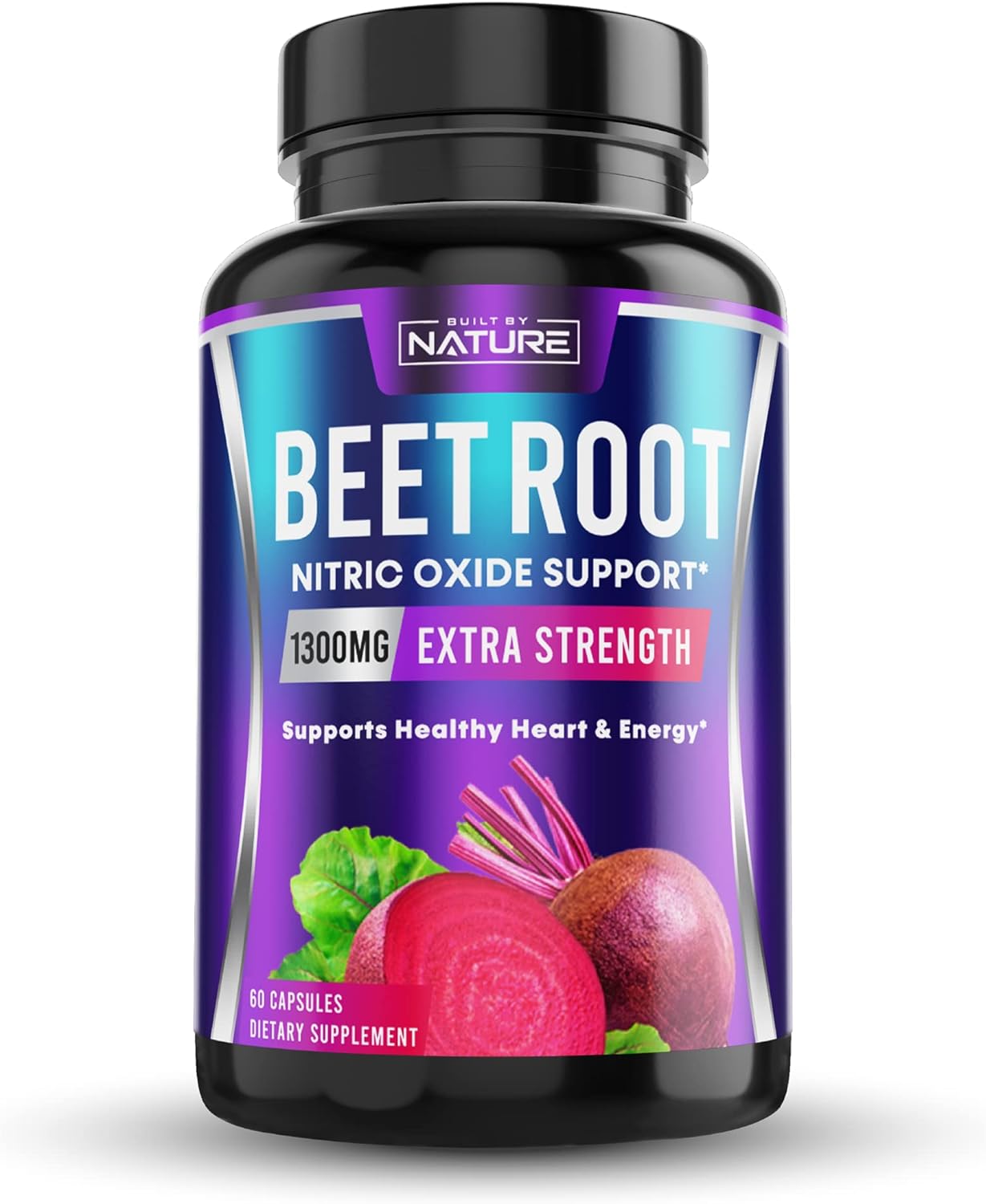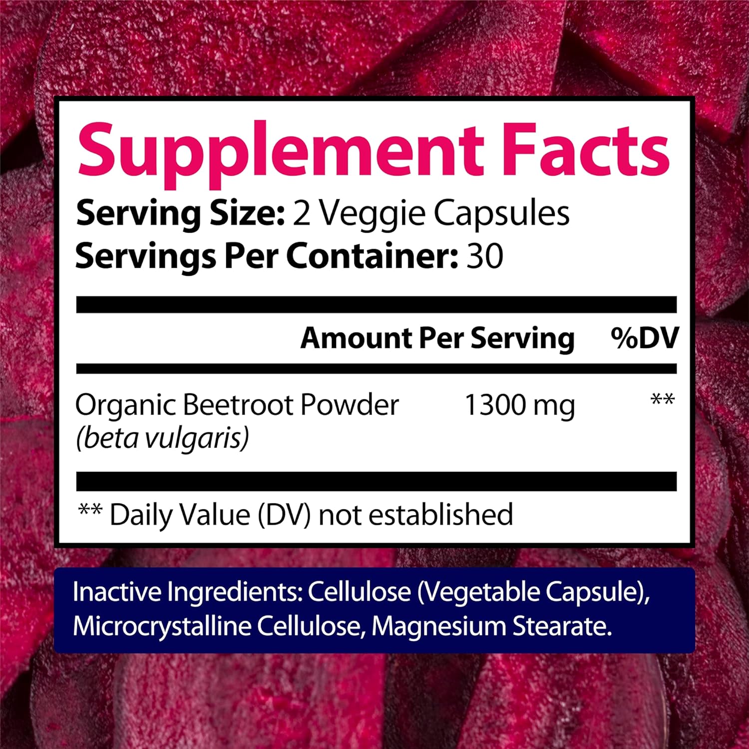 Beetroot Supplement Capsules For Nitric Oxide Booster - Rich In Nitrates - Organic Beet Root For Natural Energy & Peformance - 60 Capsules