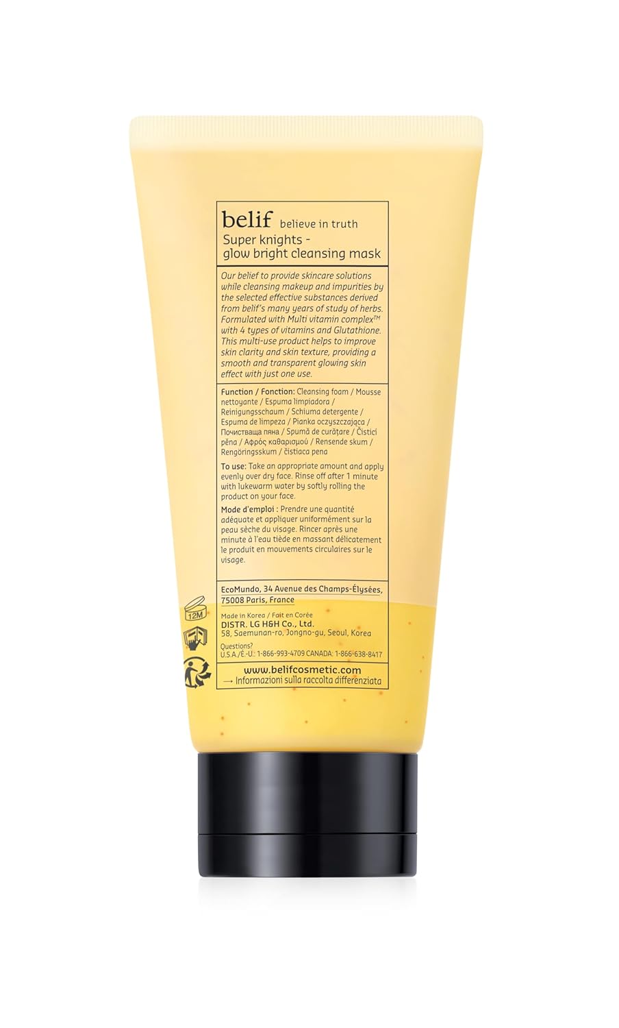 Belif Super Knights Glow Radiance Cleansing Mask, Korean Skincare With Multi-Vitamin Complex & Glutathione β Radiance & Even Skin Tone (150 Ml / 5.0 Fl. Oz.)