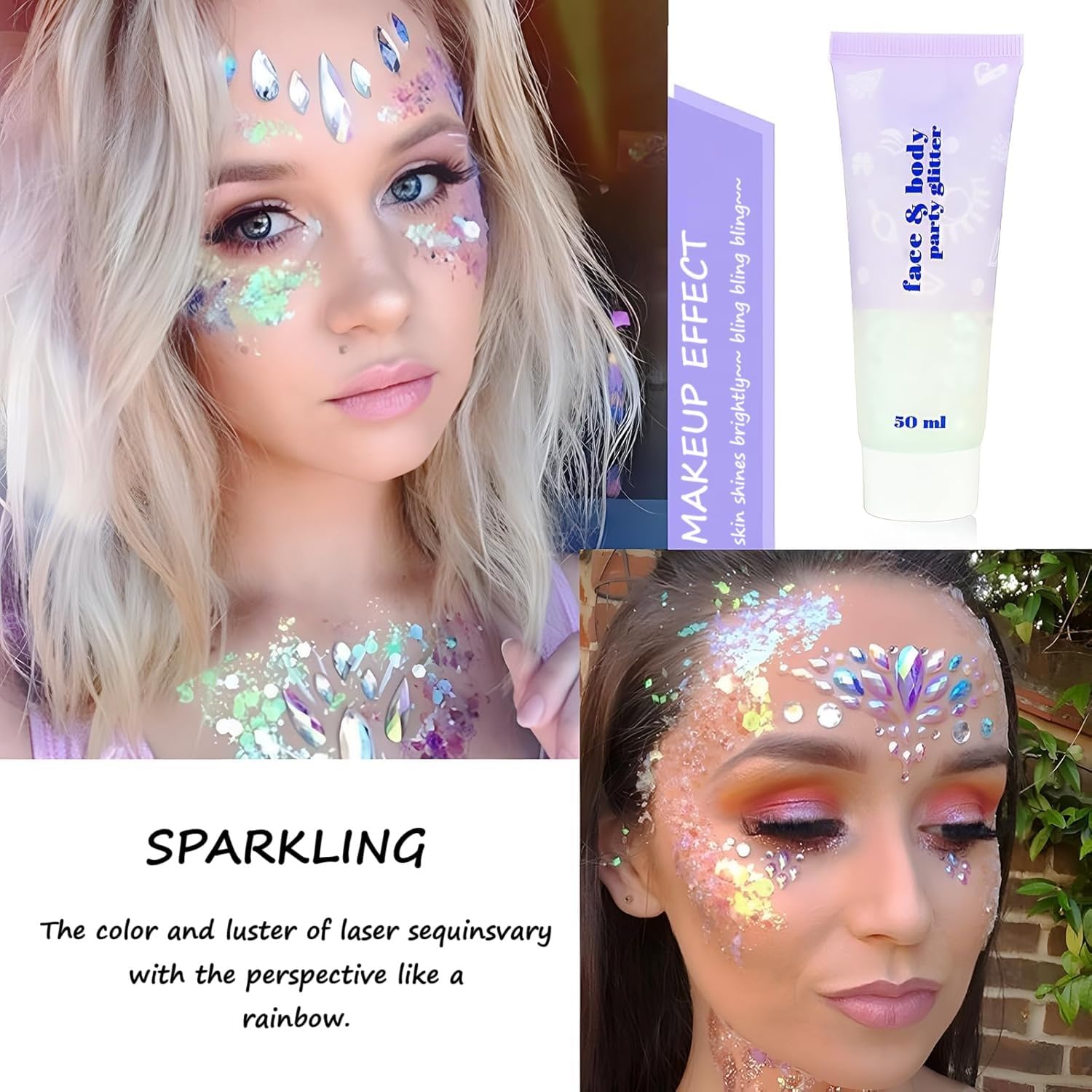 Beliky Girl Body Glitter Gel, 50Ml Face Glitters Body Gel Sequins Shimmer Liquid Eyeshadow, Mermaid Sequins Liquid Holographic Glitter Gel, Chunky Glitter For Face Hair Nails (Black)
