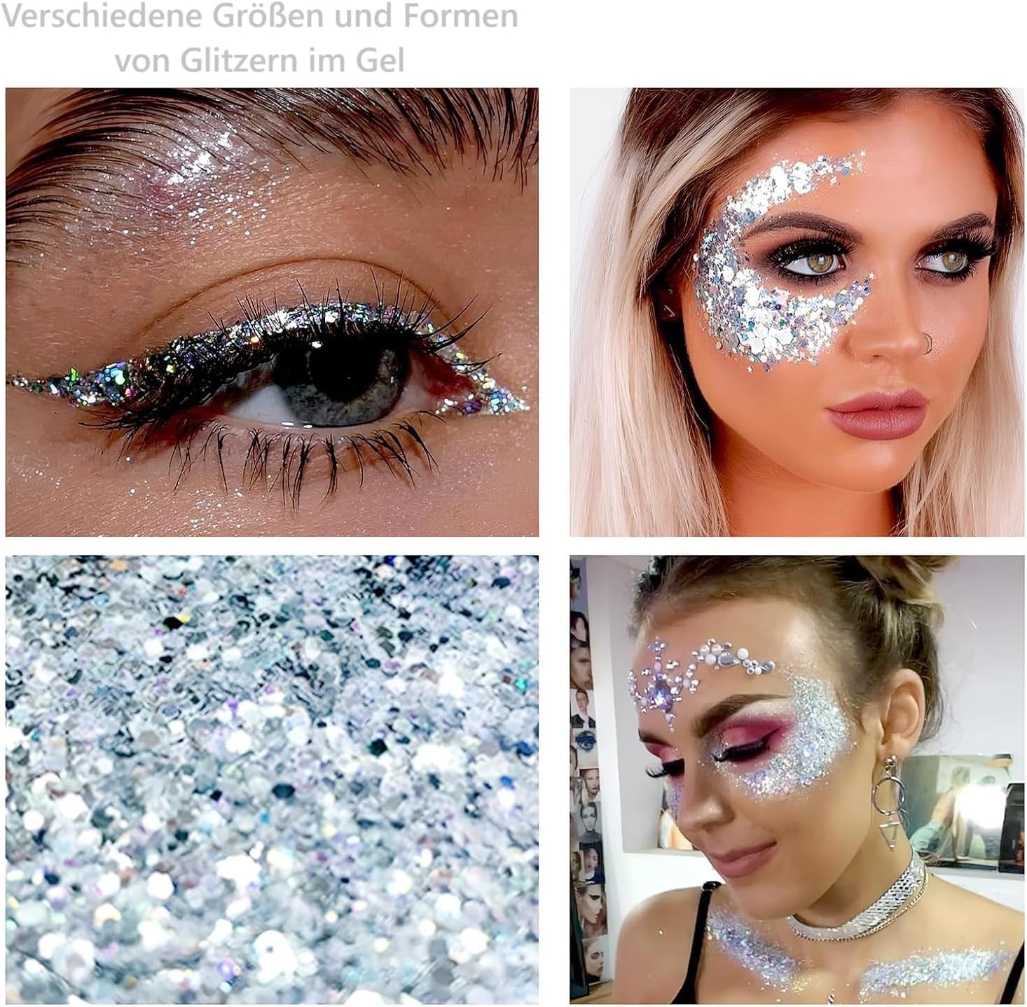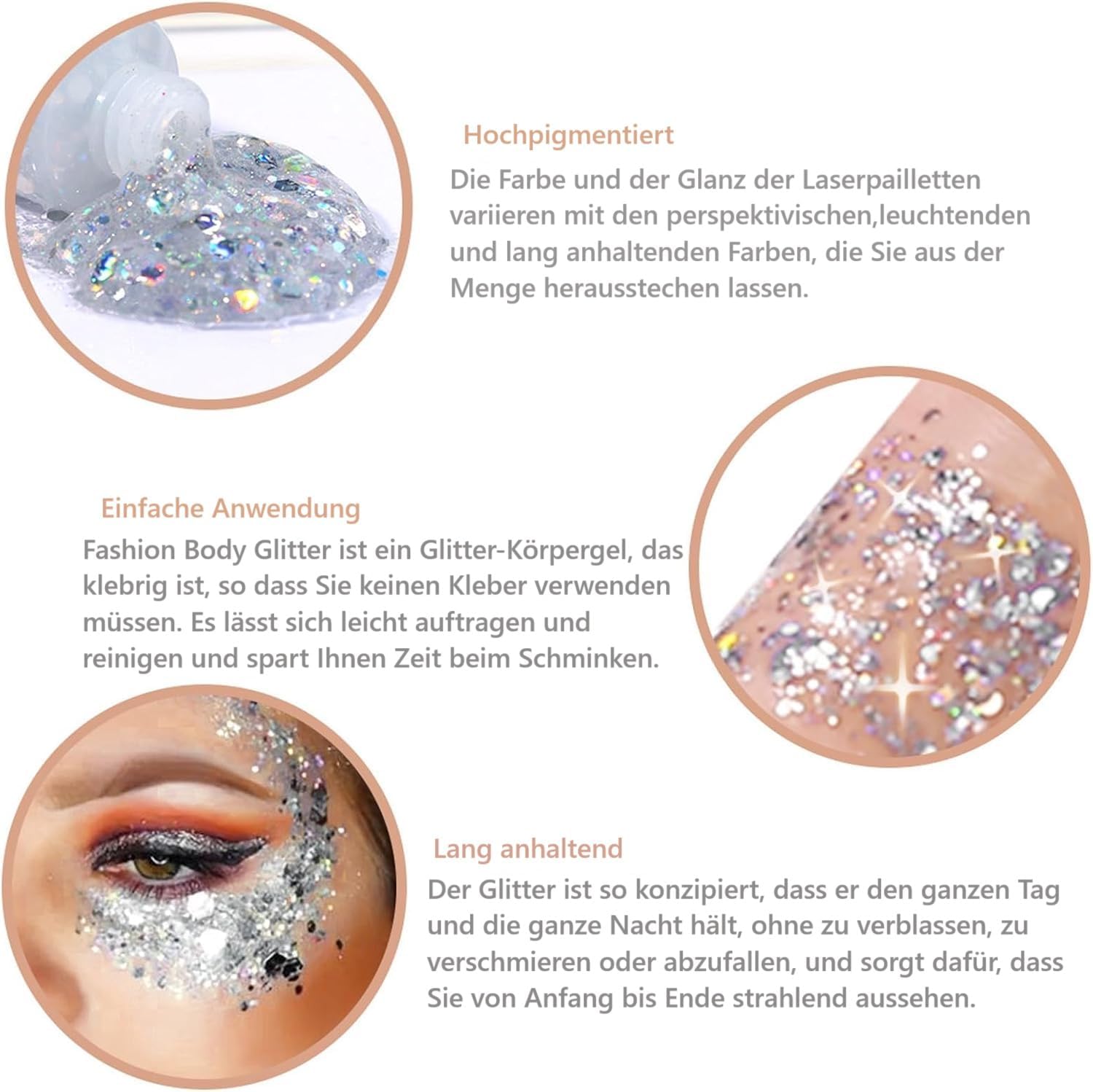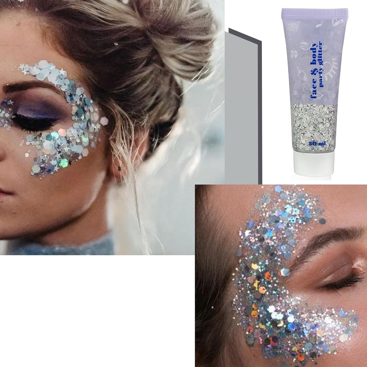 Beliky Girl Body Glitter Gel, 50Ml Face Glitters Body Gel Sequins Shimmer Liquid Eyeshadow, Mermaid Sequins Liquid Holographic Glitter Gel, Chunky Glitter For Face Hair Nails (Blue)