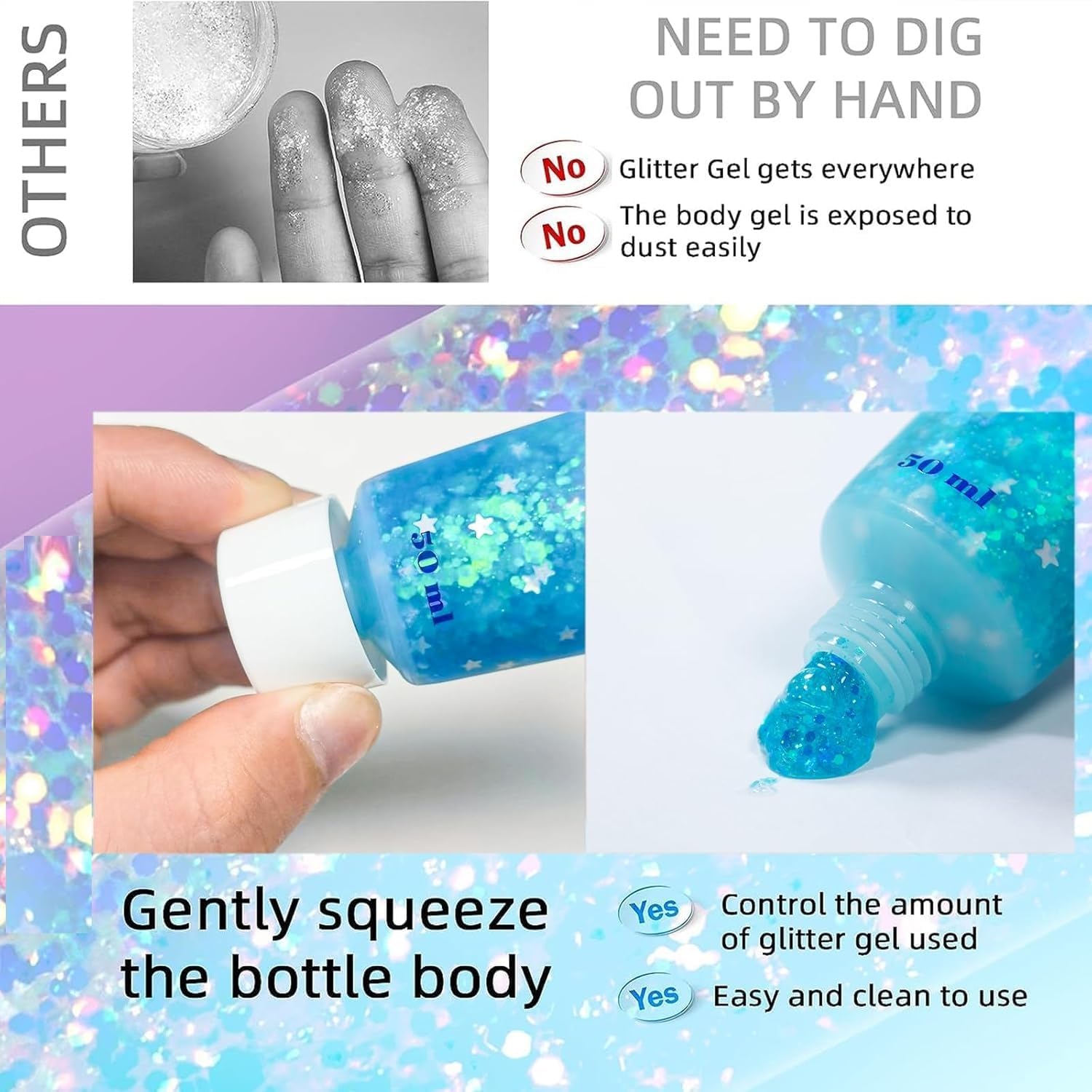 Beliky Girl Body Glitter Gel, 50Ml Face Glitters Body Gel Sequins Shimmer Liquid Eyeshadow, Mermaid Sequins Liquid Holographic Glitter Gel, Chunky Glitter For Face Hair Nails (Lake Blue)