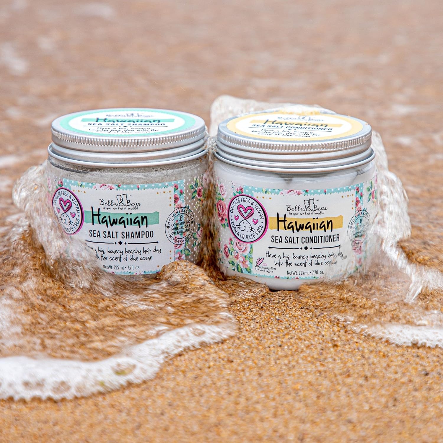 About this item EXFOLIATING SHAMPOO: Our Sea Salt Shampoo will remove oil, impurities and give your scalp the scrub of its life CRUELTY FREE: At Bella & Bear, we don't believe in animal testing for the sake of beauty. All our products are 100% Vegan ENVIRONMENTALLY FRIENDLY: Our jars come from recycled plastic and we're always looking at ways to be more socially responsible FRESH OCEAN SCENT: For hair with a beach babe vibe use our Hawaiian Shampoo and Conditioner VOLUMIZING: Our Shampoo is great for thin hair. It adds body and wave, making your hair look and appear thicker after use › See more product details,EXFOLIATING SHAMPOO: Our Sea Salt Shampoo will remove oil, impurities and give your scalp the scrub of its life,CRUELTY FREE: At Bella & Bear, we don't believe in animal testing for the sake of beauty. All our products are 100% Vegan,ENVIRONMENTALLY FRIENDLY: Our jars come from recycled plastic and we're always looking at ways to be more socially responsible,FRESH OCEAN SCENT: For hair with a beach babe vibe use our Hawaiian Shampoo and Conditioner,VOLUMIZING: Our Shampoo is great for thin hair. It adds body and wave, making your hair look and appear thicker after use