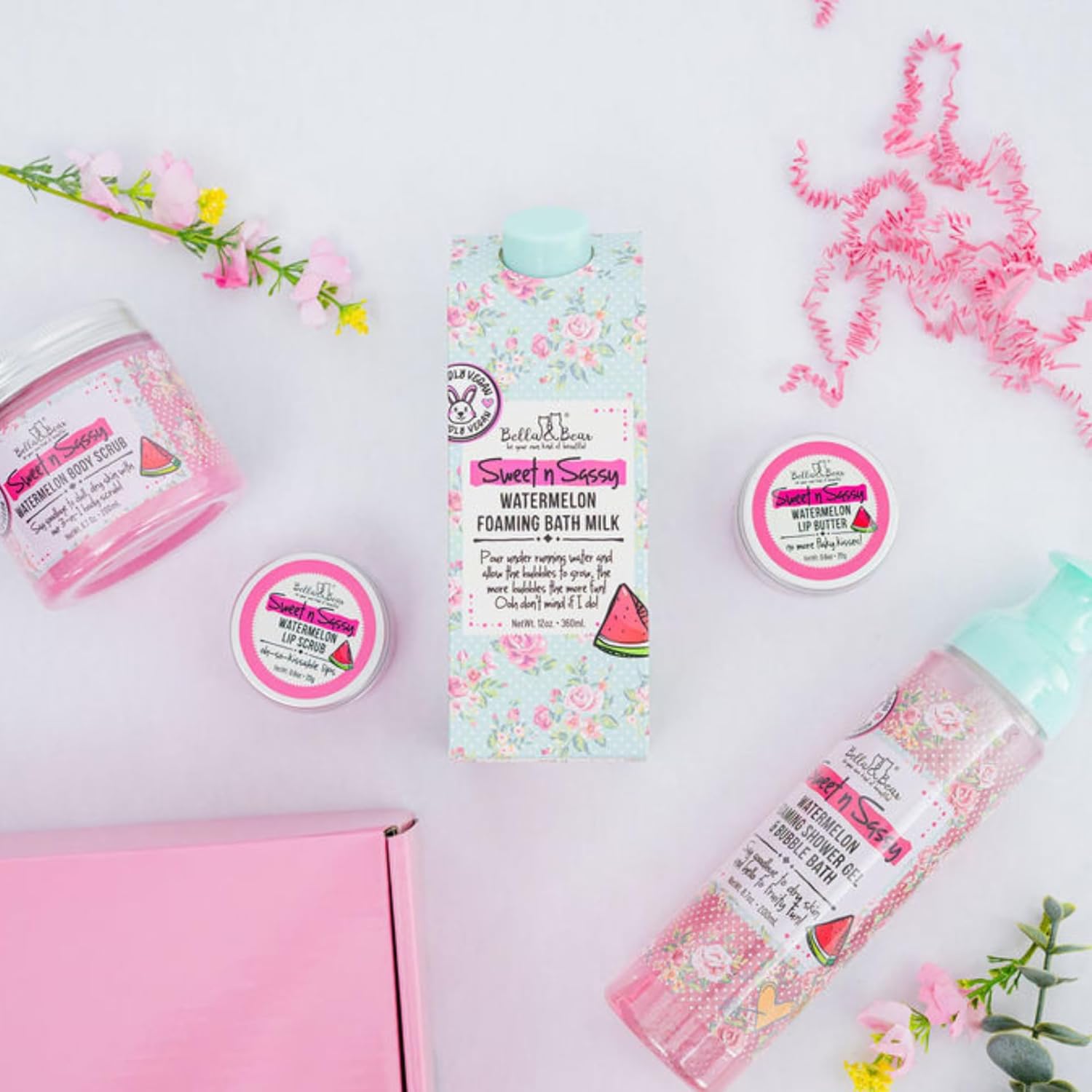 Pucker up and get ready for the ultimate lip-smacking experience! Bella & Bear's Sweet 'n' Sassy Watermelon Lip Butter is a deliciously hydrating treat for your lips. This luscious lip balm is infused with the refreshing and juicy essence of watermelon, leaving your pout soft, smooth, and irresistibly kissable. With a lightweight, non-greasy formula, it glides on effortlessly and provides long-lasting moisture without any flaky or dry patches. Indulge in the sweet and sassy watermelon flavor that will transport you to a sun-drenched picnic. At 0.6 oz, this compact lip butter is perfect for on-the-go application, ensuring your lips stay hydrated and delectable all day long. Pucker up and let your lips do the talking with Bella & Bear's Sweet 'n' Sassy Watermelon Lip Butter!,Cruelty-Free & Vegan: Note product contains cacao and hardens in cold weather, warm between fingers or leave at room temp,Watermelon Scented: Infused with a refreshing, juicy watermelon scent, it leaves your lips smelling sweet and fruity all day long,Deep Hydration: The rich, nourishing formula provides lasting moisture, leaving your lips soft, smooth, and perfectly kissable,Cute & Gift-Ready: Packaged in an adorable, playful design, this lip butter is perfect for gifting on any occasion—whether for birthdays, holidays, or a little self-care treat,Compact & Travel-Friendly: Stylish and portable, it’s easy to carry in your purse or pocket, making it ideal for on-the-go hydration