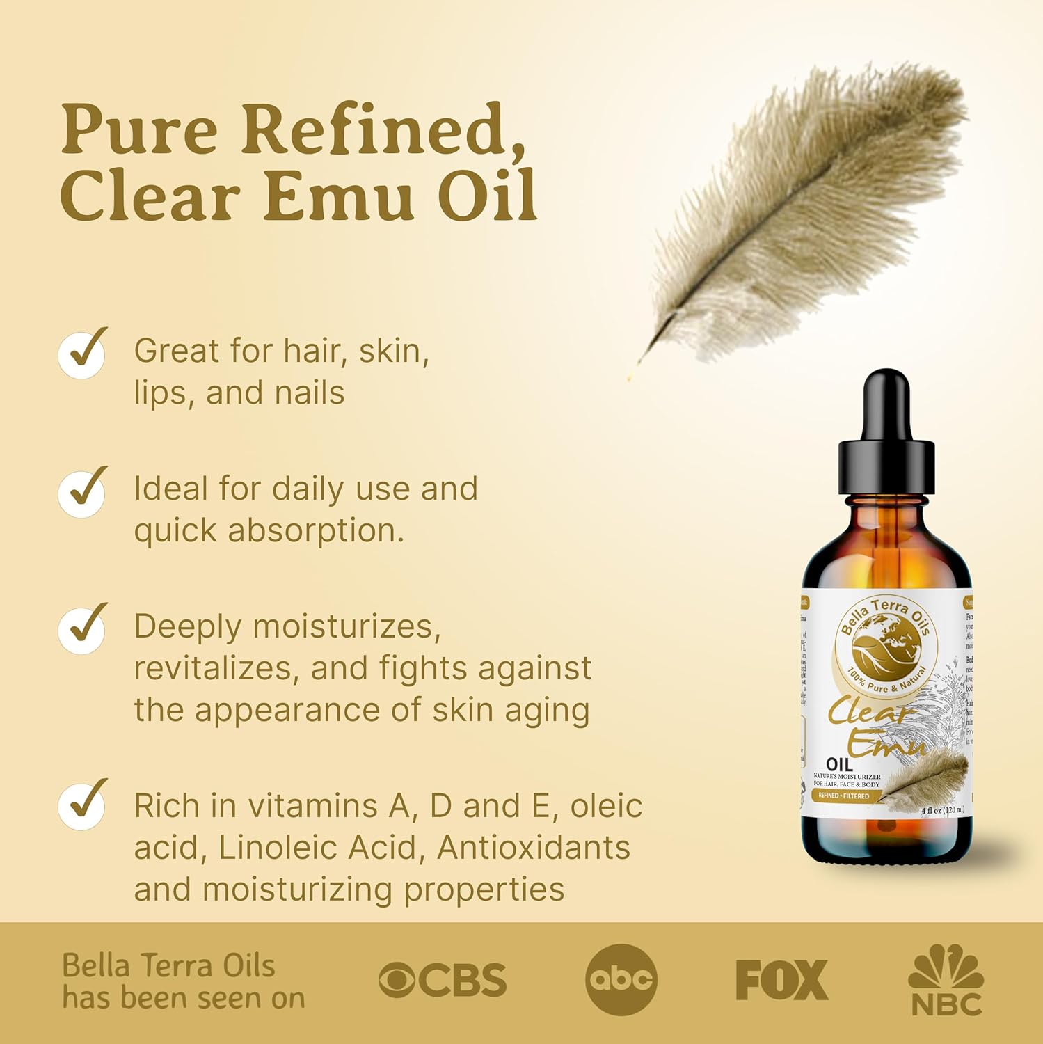 [Nature's Nuance]: Embrace the sheer beauty of Clear Emu Oil. Enveloped with essential nutrients, it's a celebration of natureās finest