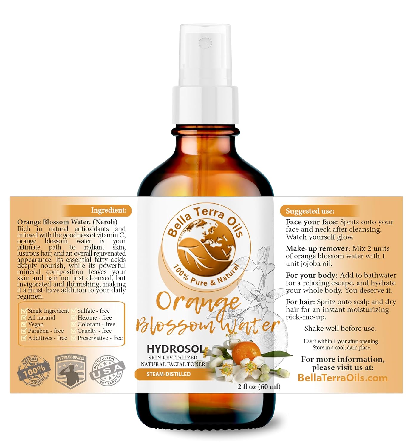 [The Purity Promise]: Experience the wholesome goodness of single-ingredient Orange Blossom Water, free from synthetic additives