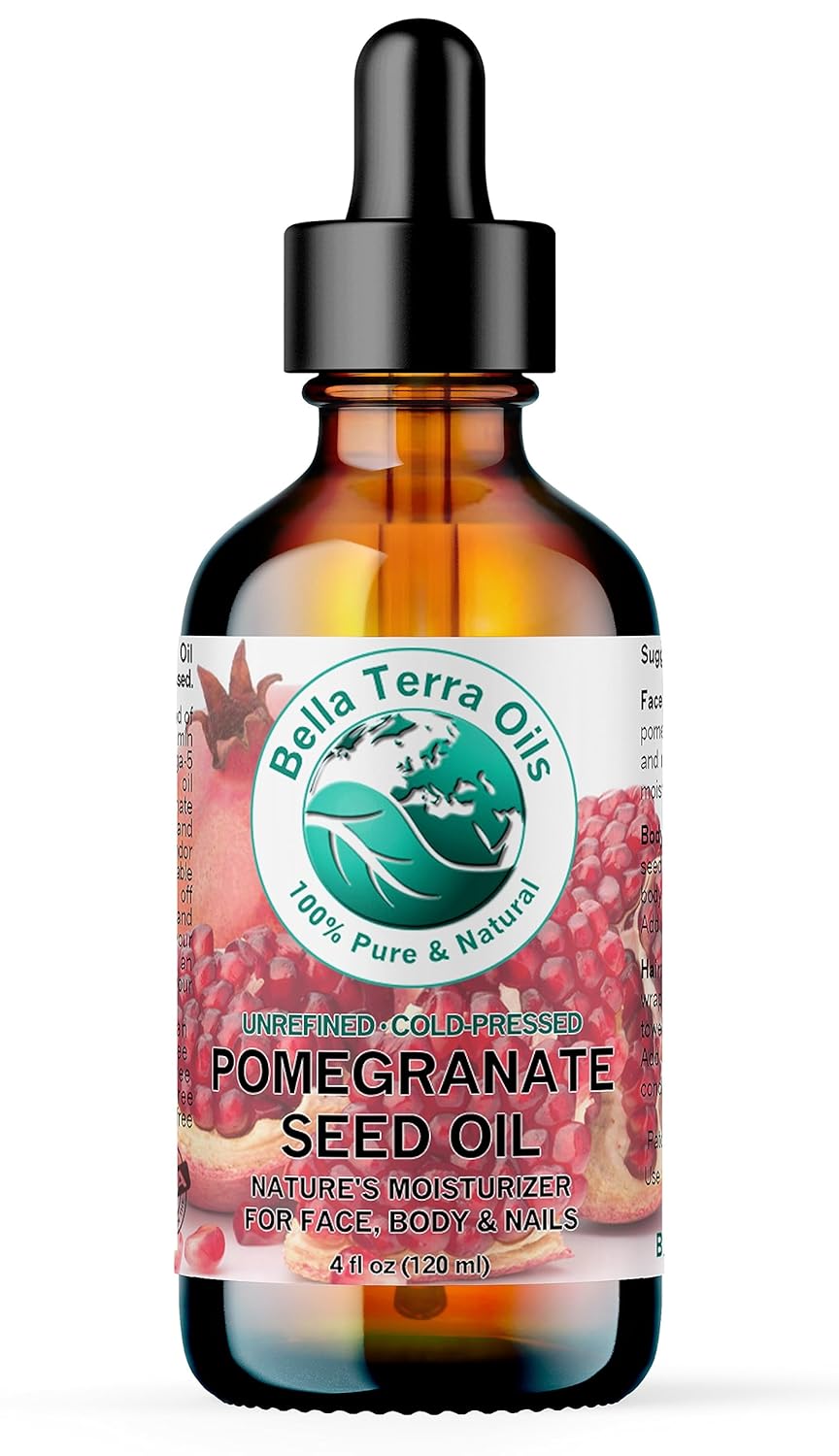 Bella Terra Oils - Organic Pomegranate Seed Oil 4 oz - A Powerhouse of Nutrients & Essential Fatty Acids, Delightfully Cold-Pressed for Pure Skin Nourishment