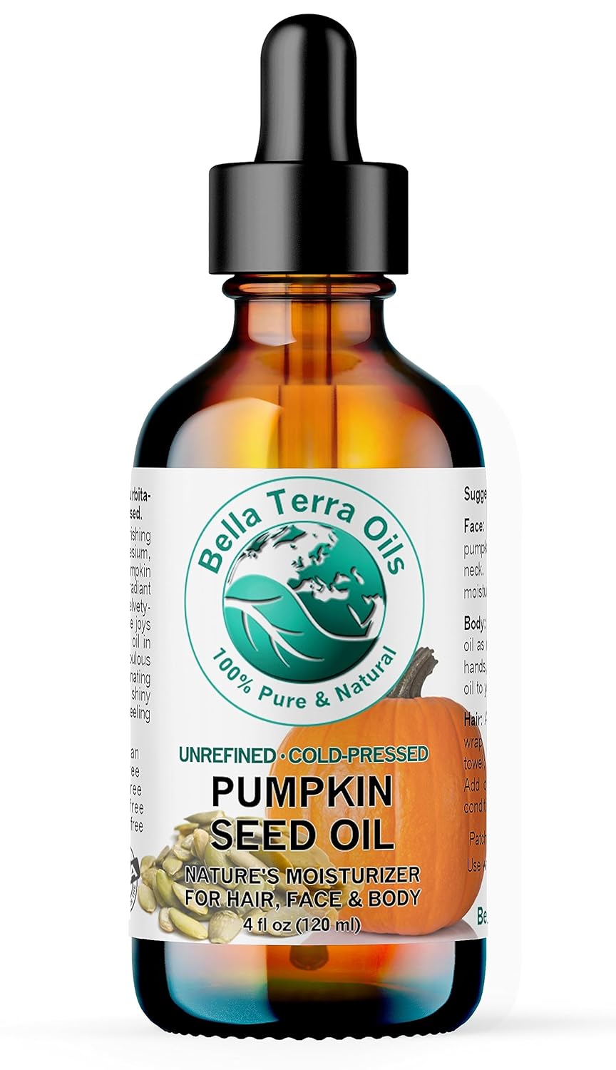 Bella Terra Oils - Organic Pumpkin Seed Oil 4 oz - Harvested Essence, Enriched with Phytosterols, Magnesium & Antioxidants, A Signature Elixir for Radiant Skin