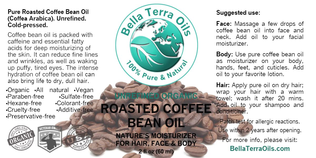 Bella Terra Oils - Roasted Coffee Bean Oil 2 oz - Rich in Vitamin E & Chlorogenic Acid, Infused with Linoleic & Palmitic Acid, The Essence of Pure Coffee