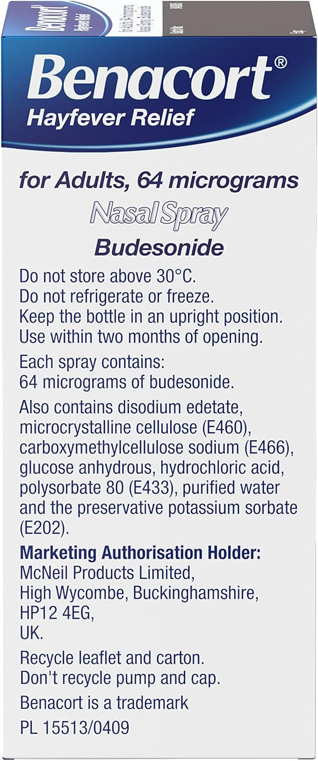 Benacort Nasal Spray (1X 10Ml), Budesonide Nasal Spray With 24-Hour Hay Fever Relief, Alcohol Free And Fragrance-Free