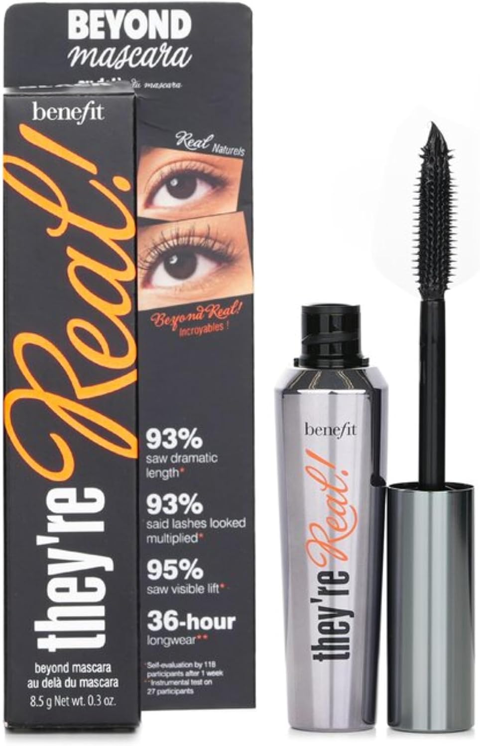 Directions Apply mascara from the base to the tips of the eyelashes, wiggling the wand as you pull it through to coat each lash,Achieve eye catching lashes with benefit They're Real Mascara in Black,An intensely volumising cult formula that creates an amazing false lash effect,The glossy black mascara coats each lash from root to tip, lengthening and thickening without drying them out