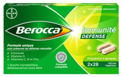 Berocca Immunity Defence 2 X 28 Vegetable Capsules Is A Dietary Supplement With A Unique Formula That Combines Vitamins And Minerals, Echinacea And A Microbiotic Strain Into 2 Capsules.Its Complete Formula Is Based On The Unique Combination Of Vitamins And Minerals To Prepare And Protect The Body From External Aggressions That Can Weaken It Daily. Vitamins D, C, B6, B9, B12 And Zinc Contribute To The Normal Functioning Of The Immune System. The Formula Of Berocca Immunity Defense Thus Allows A Protection Of Your Body Thanks To Its Complete Action On Its 3 Lines Of Defense: Skin And Mucous Membranes, The Innate Immune Response, The Adaptive Immune Response. Made In France