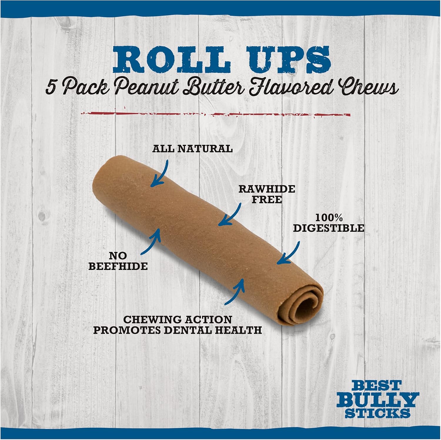 At Best Bully Sticks, Quality & Food Safety Are Our #1 Priority At The Core Of Our Process Is The Industry-Leading Food Safety Program Under Which 100% Of Our Products Are Manufactured. We Understand Your Pup Is Truly Your Best Friend And You Rely On Us To Be The Experts In Providing Safe, Quality Treats. When You Choose Best Bully Sticks, You Can Feel Confident You'Re Giving Your Pup The Safest Treats And Healthiest Lifestyle They Deserve. Promotes Dental Health: Our Roll Ups Are A Natural, Highly Digestible Dog Chew That Promote Dental Health By Scraping Away Unhealth Tartar And Plaque While Your Pup Chews. These Are A Truly Superior Alternative To Chemically Processed Chews Like Rawhide. Always Natural Best Bully Sticks Roll Ups Are Made With All-Natural Ingredients And Are Never Chemically Processed. Made With Delicious Peanut Butter Flavor, Every Dog’S Favorite Flavor, These Chews Are Perfect For Dogs With Protein Or Meat Sensitivities. Great For All Dogs From Small Dogs To Big Dogs, And Every Age In Between, Our Roll Ups Are The Perfect Hobby Chew Any Dog Will Love. Available In Two Sizes; 4 Inch For Smaller Dogs And 7 Inch For Larger Dogs, These Chews Will Help You Say Goodbye To Rawhide For Good. Powerful Chewers Will Enjoy These As A Quicker Snack, And Medium To Light Chewers Will Enjoy This Chew Longer