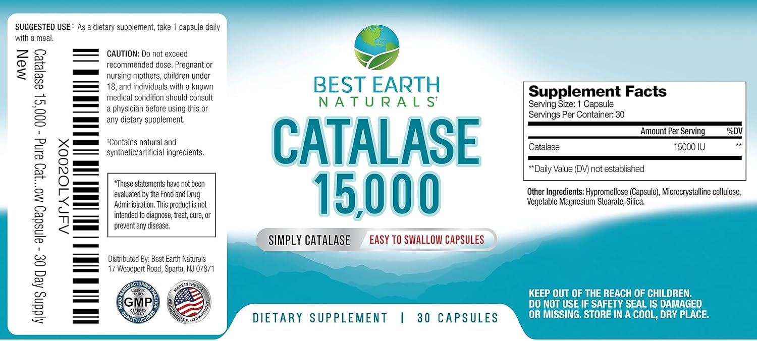 About this item Catalase is a vitamin supplement with a potent 15,000 units of Catalase enzyme, formulated to help your body replenish Catalase levels that naturally diminish with aging. Supporting Hair Vitality: Catalase supplements can help contribute to maintaining the youthful appearance of hair by helping to support natural hair color. For Overall Health: Catalase 15,000 offers a high concentration of catalase available to help support your body. Suitable for Men and Women: Formulated to meet the needs of both men and women seeking strong hair. It offers a 30-day supply. Quality Ingredients: Best Earth Naturals offers quality vitamins and supplements, intended to ensure your body gets the nutrients it needs to function at its best. › See more product details,Catalase is a vitamin supplement with a potent 15,000 units of Catalase enzyme, formulated to help your body replenish Catalase levels that naturally diminish with aging,Supporting Hair Vitality: Catalase supplements can help contribute to maintaining the youthful appearance of hair by helping to support natural hair color,For Overall Health: Catalase 15,000 offers a high concentration of catalase available to help support your body,Suitable for Men and Women: Formulated to meet the needs of both men and women seeking strong hair. It offers a 30-day supply,Quality Ingredients: Best Earth Naturals offers quality vitamins and supplements, intended to ensure your body gets the nutrients it needs to function at its best