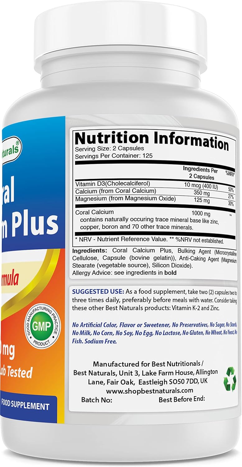 Best Naturals Coral Calcium Plus 1000 Mg 250 Capsules