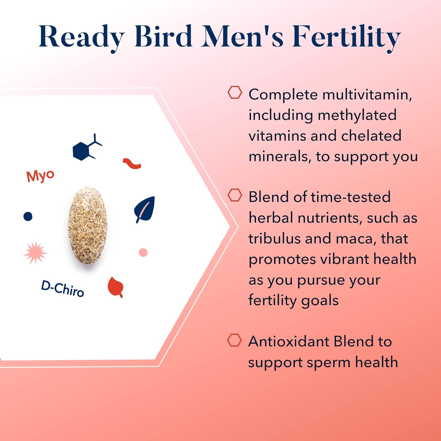 UNIQUE 3:1 SUPPLEMENT: Ready Bird Fertility Fertility Supplement for Men is a (1) herbal supplement of time-tested herbal nutrients, such as tribulus and maca, that promote vibrant health as you pursue your fertility goals, (2) a multivitamin, including methylated vitamins (methylfolate, methylcobalamin, and pyridoxal-5-phosphate) to support reproductive health and (3) an antioxidant blend that supports your body’s well-beingWORTH EVERY PENNY: Our immune support supplement vitamin is formulated by our founder, a neurologist and mother, to help nourish you and prepare you for your fertility goals. Easy to swallow, ultra-gentle caplet. One (1) serving a day of these supplements for men is convenient and easy to rememberTHE BEST INGREDIENTS MAKE THE BEST VITAMINS: Free of GMOs, gluten and dairy. Whole food-based. Proudly made in the U.S.A. This product is vegan. Color may vary, as this is a food-based product. We do not use single-use plastic outer seals to eliminate plastic wasteSMART NUTRITION FOR YOUR LIFESTAGE: Neurologist-crafted vitamins. Trusted ingredients. We create vitamins for your whole nest, including preconception, pregnancy, postnatal, childhood, and parenthood. It’s our mission to help you soarFOLLOW OUR BRAND STORE: Complete your Best Nest supplement routine with our other vitamins and supplements! Pairs well with our Women's Fertility Formula and Omega-3 for vibrant brain and body health. Visit our Brand Store to see everything Best Nest has to offer