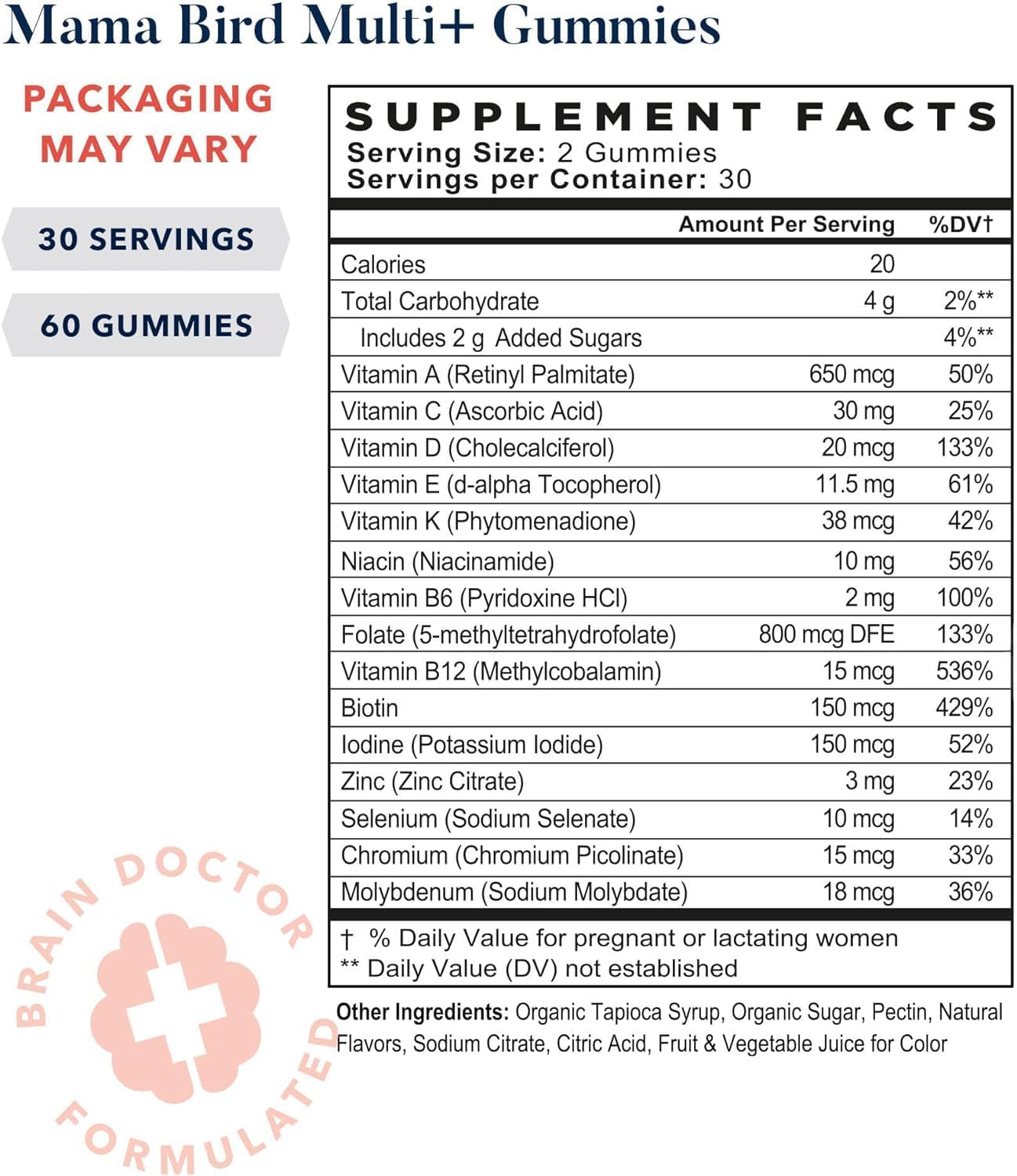 Best Nest Wellness Mama Bird Prenatal Gummies For Women - Vegan Prenatal Vitamins, Methylfolate (Folic Acid), Womens Prenatal Multivitamin Strawberry Flavor, Once Daily Eye And Brain Development, 60Ct