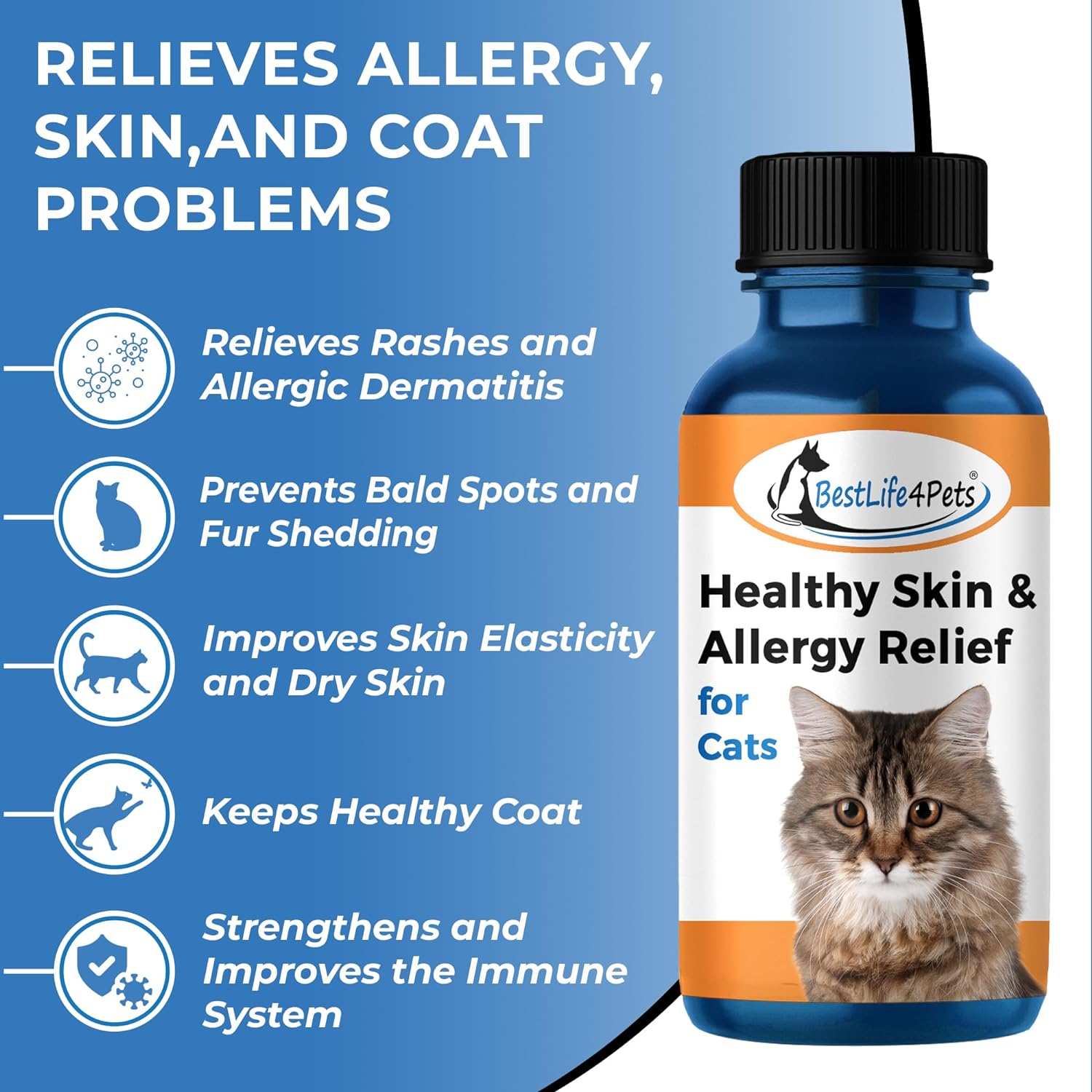 YOUR ITCHY SKIN & HEALTHY COAT SUPPORT: Cat dandruff, hair loss or acne are manifestations of a deeper problem – an imbalance inside your feline’s body. Unlike medicated ointments, shampoos, conditioners and sprays, BestLife4Pets Healthy Skin and Allergy Relief for Cats solves the root problem directlyALL YEAR ROUND ANTI-ITCH SUPPLEMENT: Allergies and skin irritations are not seasonal - they happen all the time. Frequent baths, constant scratching and licks can cause your kitty cat to have a dull coat, welts and lesions. Healthy Skin and Allergy Relief for Cats helps relieve allergic dermatitis, dry skin, swelling, patchy coat, hot spots and shedding100% NATURAL WITH NO SIDE EFFECTS: Our top quality homeopathic skin and allergy treatment has no artificial ingredients or gluten so it won't leave you dealing with painful side-effects like upset stomach, vomiting, or diarrhea. Safe for all cats senior to kittens, our cat skin and coat remedy can be used alongside other cat vitamins or medsEASY TO ADMINISTER NO FUSS TABLETS: The best anti scratch cat supplement is one that your pet will actually take without a struggle or fight. These tiny pellets dissolve quickly, have No Odor, and leave No Bad Taste so it is easy to hide them in food or treats!