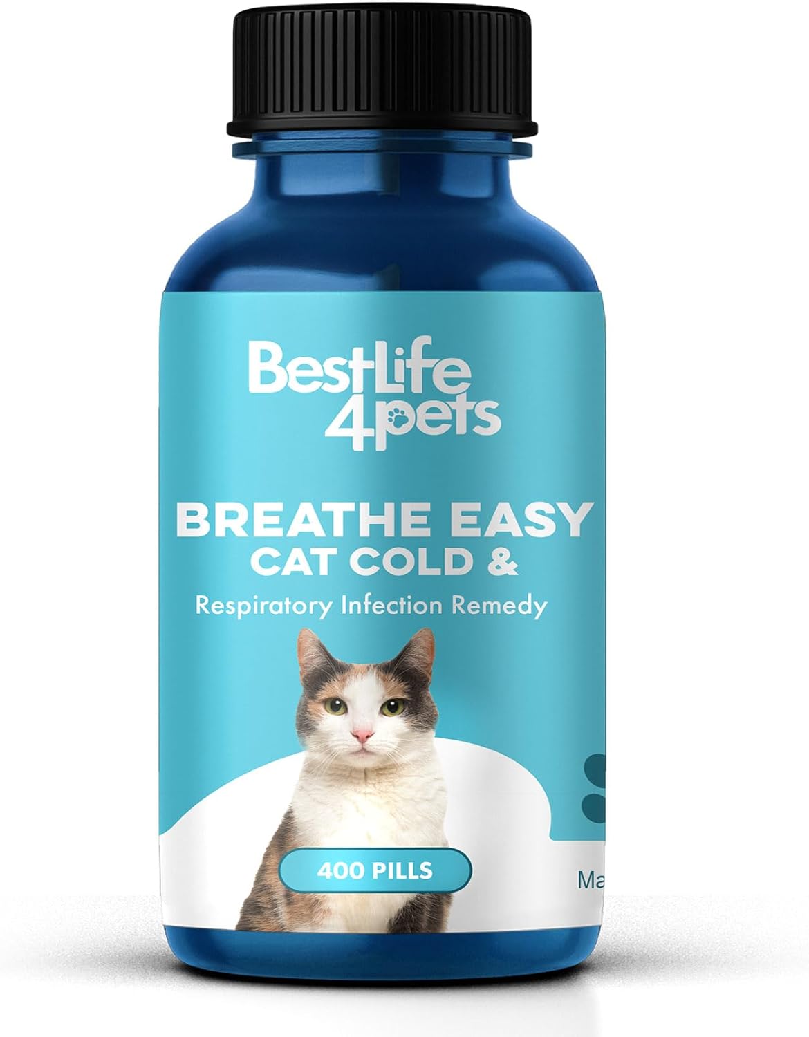 Bestlife4Pets Cat Cold & Respiratory Infection Remedy - Breathe Easy Natural Relief For Your Feline'S Runny Nose, Sneezing, Coughing, Nasal Congestion, And Asthma - 400 Odorless, Tasteless Pills