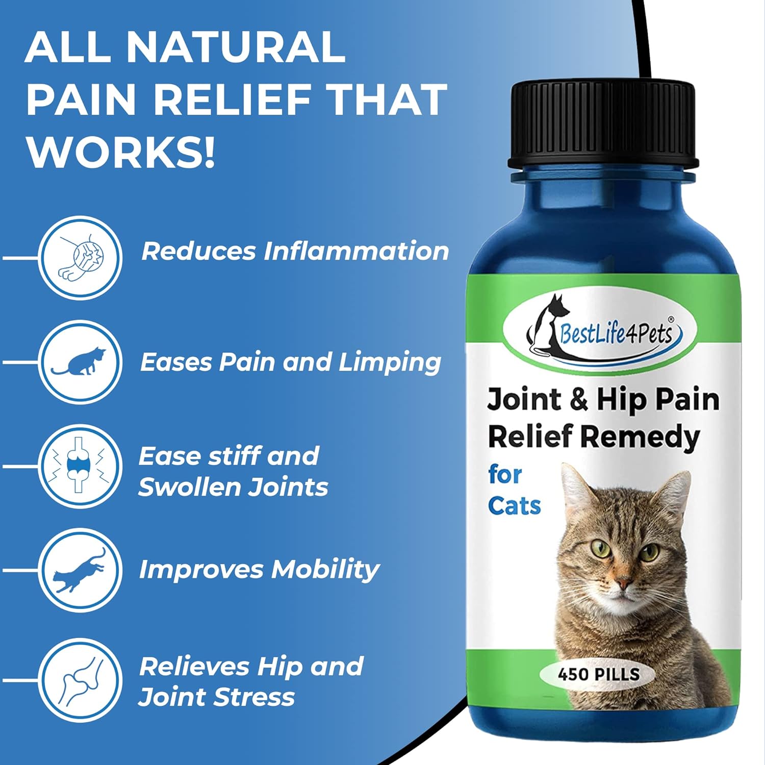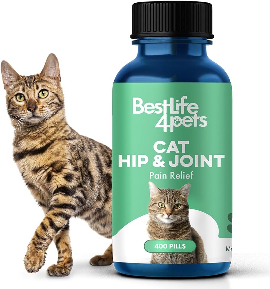 Bestlife4Pets Cat Hip And Joint Supplement - Relief From Pain, Inflammation, And Injuries - Improve Mobility - No Odor Or Taste - All Natural Easy To Use And Swallow - Pills