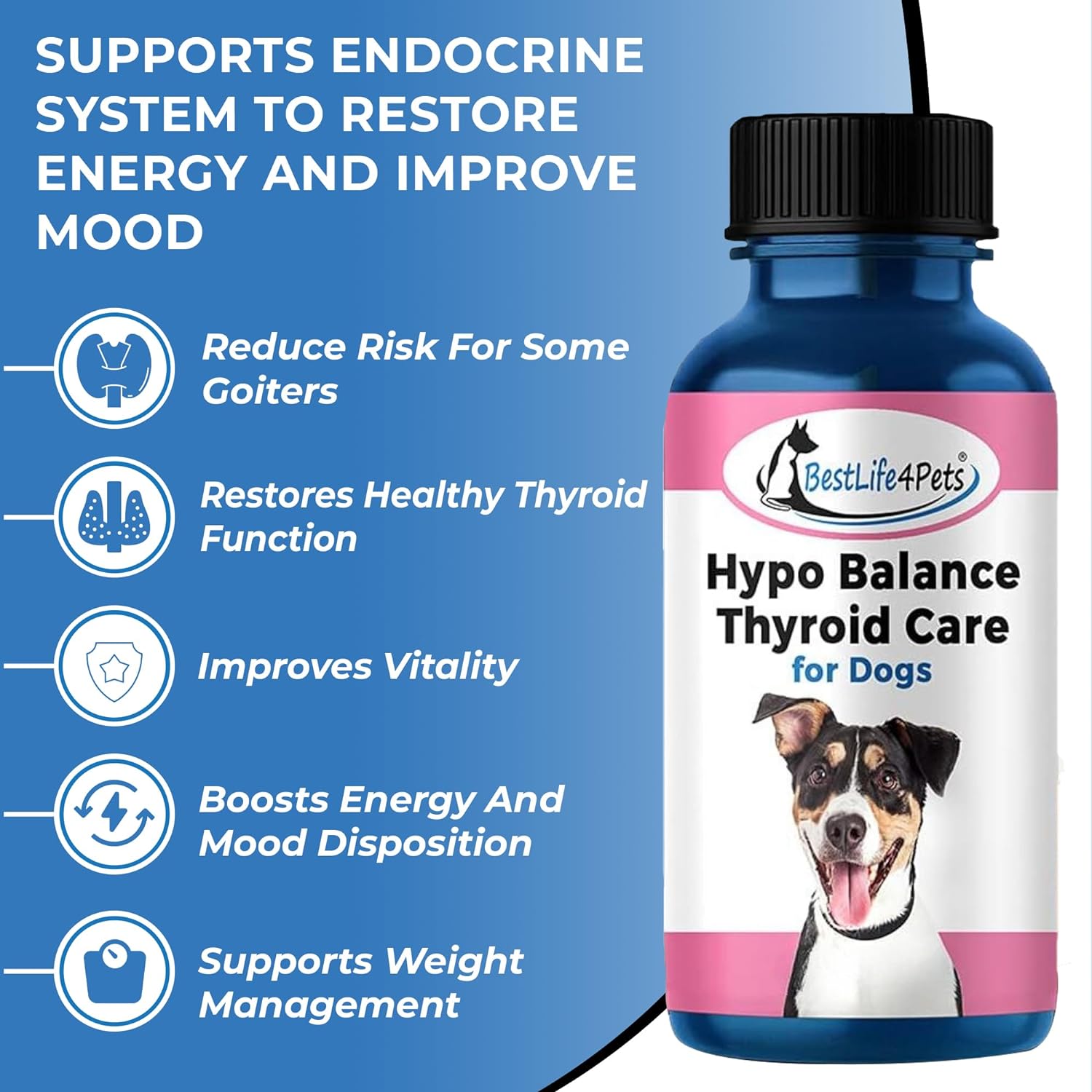 Bestlife4Pets Hypo-Balance Thyroid Support For Dogs - Natural Canine Thyroid Supplement Supports Endocrine System To Restore Energy, Improve Mood, Reduce Shedding And Boost Metabolic Functions