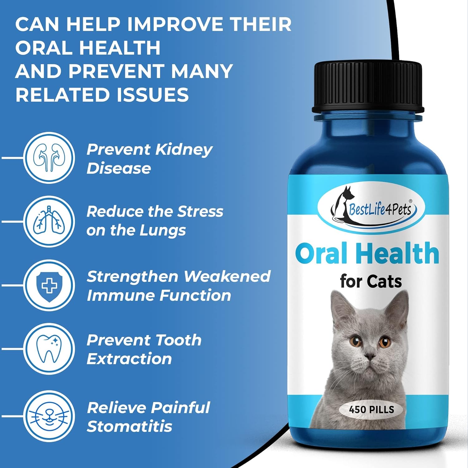 Bestlife4Pets Oral Health For Cats - Cat Dental Care Supplement Anti Inflammatory Pain Relief For Stomatitis Gingivitis And Gum Disease Cat Supplies For Dental Care - Easy To Use Pills