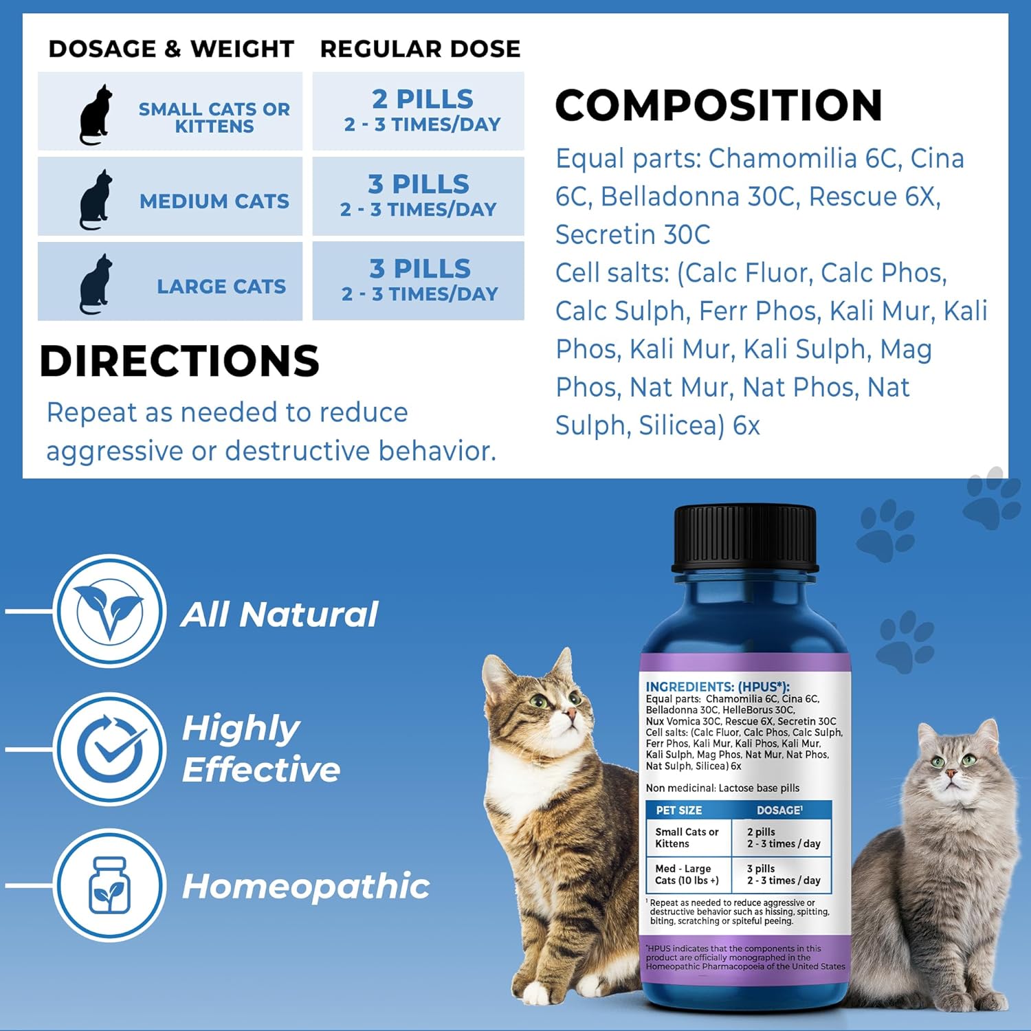 TARGETS AGGRESSION & ANXIETY: Peaceful Paws for Cats calms aggressive tendencies, helping your cat live harmoniously with other pets. Ideal for territorial disputes, spraying, and other aggressive behaviorsNATURAL CALMING SOLUTION: Infused with natural ingredients that act to provide a gentle calming effect, our formula offers a soothing experience without causing drowsinessEFFECTIVE FOR VARIOUS BEHAVIORAL ISSUES: Not just for aggression, Peaceful Paws helps with howling, stress, dementia-related symptoms, and more, making it a versatile solution for cat ownersTASTY AND EASY TO ADMINISTER: Small and odor-free pills easily mix into cat food whole or crushed into powder won't be detected by even the fussiest of feline noses, making them a breeze to give to household or even feral cats