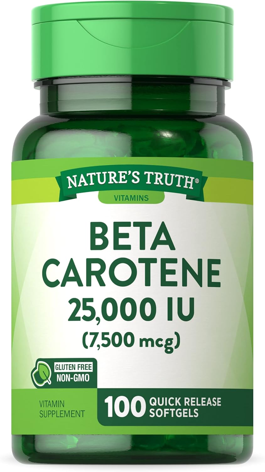 What Is Beta Carotene Naturally Found In Various Fruits And Vegetables, Most Notably Carrots, Beta Carotene Is A Carotenoid Famous For Its Distinct Red-Orange Color. It'S Also A Precursor Of The Essential Vitamin, Vitamin A. How To Get Beta Carotene: Beta Carotene Is Often Featured In Supplements Such As Capsules, Pills, Gel Caps, Gummies And Other Forms. However, The Quality Of The Source Is Dependent On The Brand. Searching For A Beta Carotene Supplement From An Expert Provider That Knows Vitamins Nature'S Truth'S Beta Carotene: Nature'S Truth Now Offers A Premium Beta Carotene Supplement. A Single Serving Provides 7,500 Mcg (25000 Iu) Of Vitamin A (100% As Beta-Carotene) Through Quick-Release Softgels .Purity And Potency Are Our Top Priorities At Nature'S Truth, Which Is Why Our Formula Is Non-Gmo, Gluten-Free And Contains No Artificial Flavor, Sweetener Or Preservatives. It'S The Perfect Addition To Any Professional Vitamin Regimen!