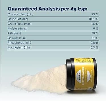 Suited For Dogs Of All Growth Stages: Many Dogs Struggle To Eat Whole Bones. Better Bones Is An Excellent Calcium Powder For Dogs Suitable For Seniors And Puppies On A Homemade Diet. You Don'T Need To Worry About Choking Or Splintering, And You Don'T Need To Add Unnatural Calcium To Cooked Foods. Best Of All, It Only Takes A Few Seconds To Mix The Right Amount Of Our Air-Dried Bone Powder Into Your Pet'S Home-Prepared Meals