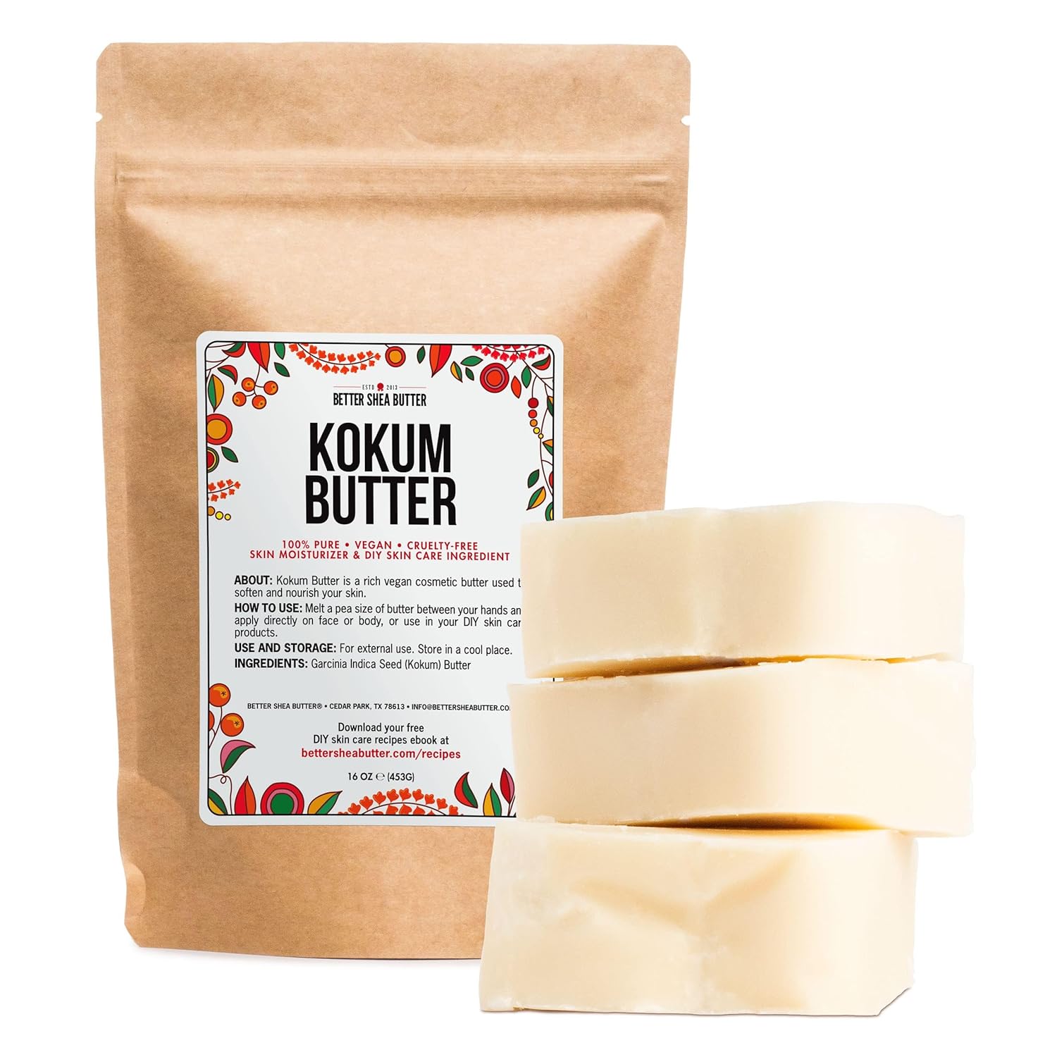 Better Shea Butter Raw Kokum Butter Unrefined - Body Butter Bar for Soap Making and DIY Butter, Skin and Hair Products - Pure, Unscented Skin Butter for Lotion Base - Kokum Butter 1 lb Block