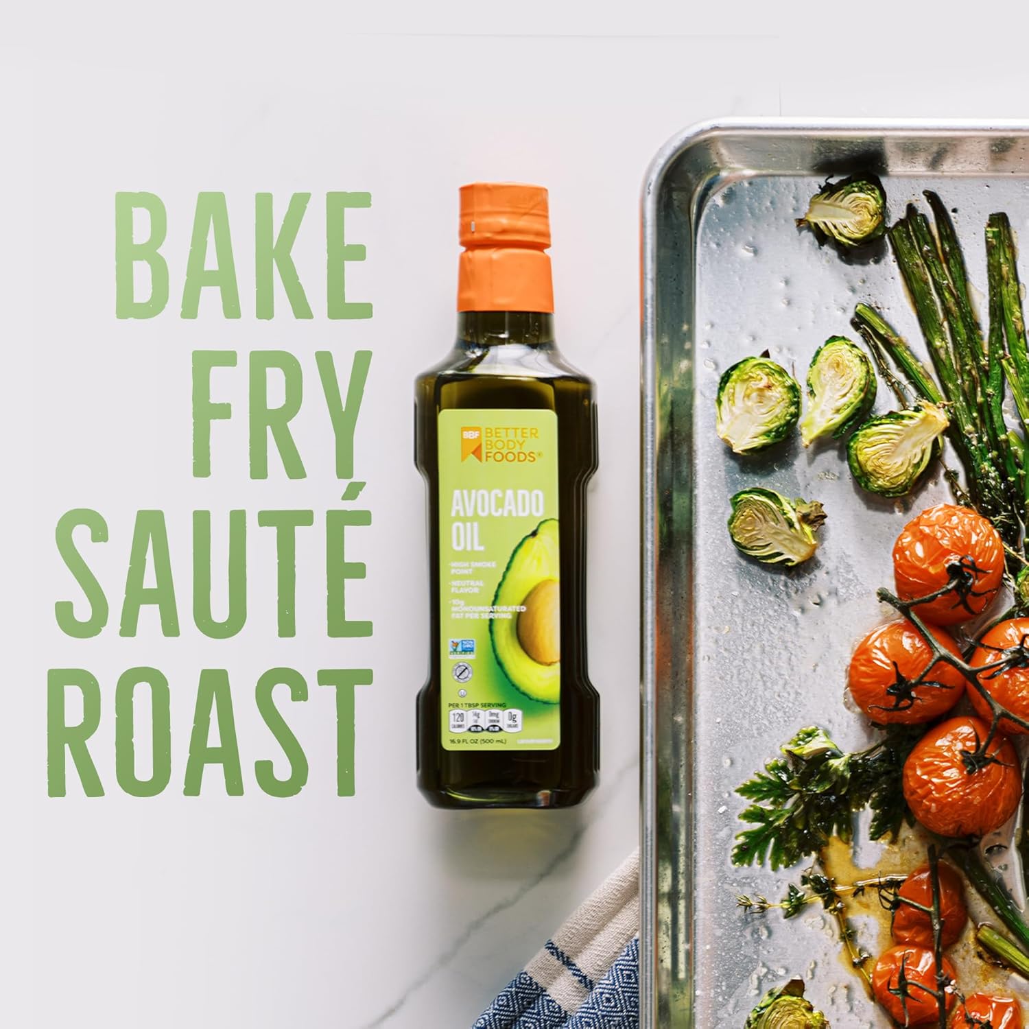 BetterBody Foods Refined Avocado Oil is the perfect all-purpose cooking oil. Our avocado oil is made from carefully selected avocados, providing a mild, smooth flavor that perfectly complements other foods. It's a great way to add monounsaturated fat to all of your meals. It tastes super delicious when served cold on salads and veggies or in sauces, pestos, and more. Use it to make a homemade dressing and pair it with a fresh, mixed greens salad for an unbelievably light and refreshing meal or side dish. It's also a versatile choice for a range of methods such as searing, baking, stir-frying, or sautĆ©ing. Use avocado oil for cooking or baking as a replacement for traditional olive oil. Non-GMO and gluten-free, this oil contains no additives, just avocado oil. It delivers a clean flavor because it's made from clean ingredients, and it is perfect for keto and paleo diets. We believe the journey to a better life starts with better food. Thatās why we travel the globe to find quality ingredients, providing you with better food choices because life is better when you eat better. BetterBody Foods is dedicated to bringing you delicious cooking options to boost your physical well-being and to give you better alternatives to guilt-inducing foods. Eating clean doesnāt have to be bland, it should be enjoyable! Thatās why we make sure to use only the highest-quality and tastiest ingredients possible for your cooking, baking, and other culinary needs,GREAT FOR COOKING: Our refined avocado oil is the perfect all-purpose cooking oil. It is great for fried dishes, and it makes a nice base for a homemade salad dressing when cold,EVERYDAY VERSATILITY: This cooking oil is useful for just about anything, making it olive oil's match in every way. Use it for frying, sauteing, baking, and more,LIGHT FLAVOR ENHANCER: This useful cooking oil has a subtle and smooth flavor compared to traditional vegetable oil, enhances the flavors of food, and has only 10g of monounsaturated fat per serving,NO ADDITIVES: Refined, Non-GMO and gluten-free, this oil contains no additives. Carefully sourced to deliver a clean flavor, this oil is perfect for keto and paleo diets,EDUCATE YOUR TASTEBUDS: BetterBody Foods products combine better-for-you ingredients with delicious flavor. We are committed to nutritious, wholesome foods made with clean, simple ingredients