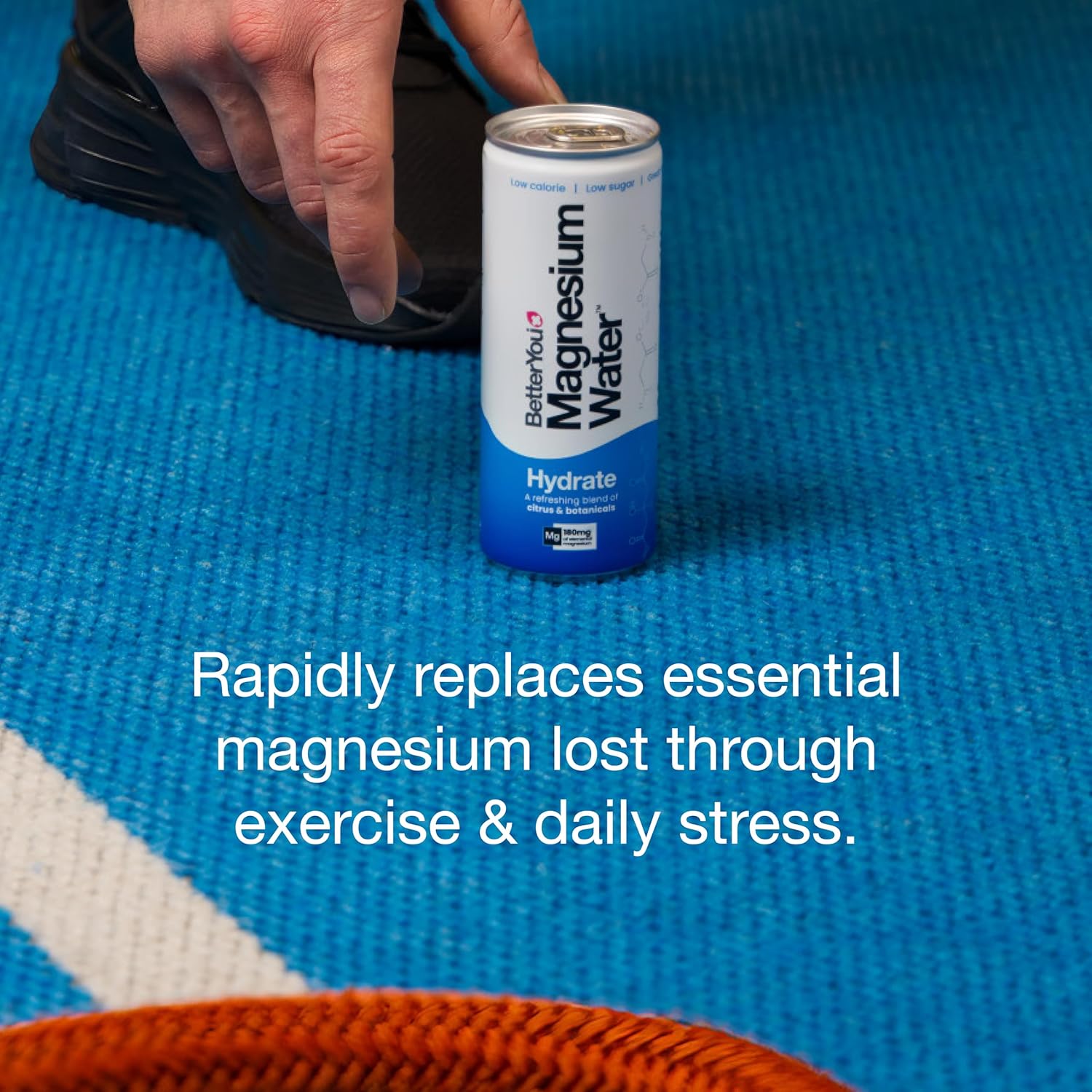 Betteryou Magnesium Mineral Water, Energy, Natural Sustained Energy Boost, Magnesium Glycinate, Vital B Vitamins & Nitrates, Infused With Pomegranate & Rhubarb, Pack Of 12, 250 Ml