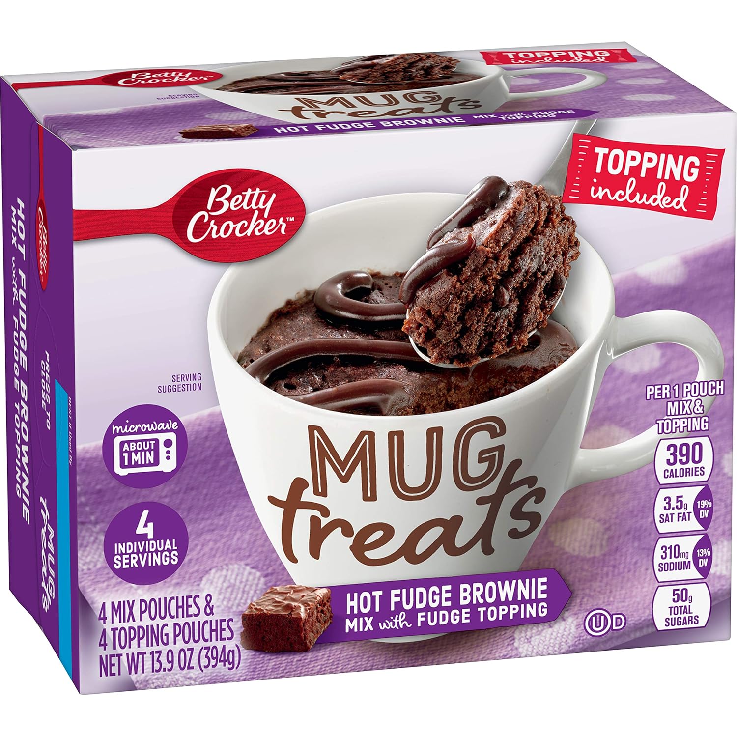 Betty Crocker Mug Treats Hot Fudge Brownie Mix With Fudge Topping, 4 Servings, 13.9 Oz
