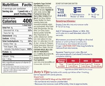 Betty Crocker Mug Treats Rainbow Chip Cake Mix With Frosting, 4 Servings, 13.9 Oz