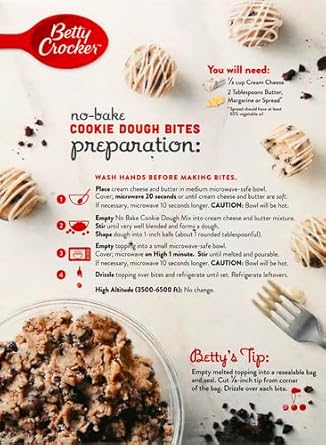 Highly Snackable, No-Bake Cookie Dough In Everyone'S Favorite, Cookies And Cream Flavor. These Edible Cookie Dough Bites Are Easy For Kids To Make And Safe For Everyone To Eat. No Baking Is Necessary, And They Go From The Bowl To Microwave In Just Minutes So You Don'T Have To Wait Long To Satisfy Your Sweet Tooth. Simply Drizzle The Topping Included And Serve To Enjoy These Delicious Bites As A Fun Kids Snack Or As A Quick And Easy Party Treat. For More Than A Century, Betty Crocker Has Been A Popular Creator Of Easy, Delicious Recipes. Today, The Betty Crocker Kitchen Is Still Providing Convenient, Tasty Dessert Mixes, Frostings, And Convenient Meal Options And Side Dishes. And Today, You Can Still Find Those Same Products You Grew Up With On Grocery Shelves