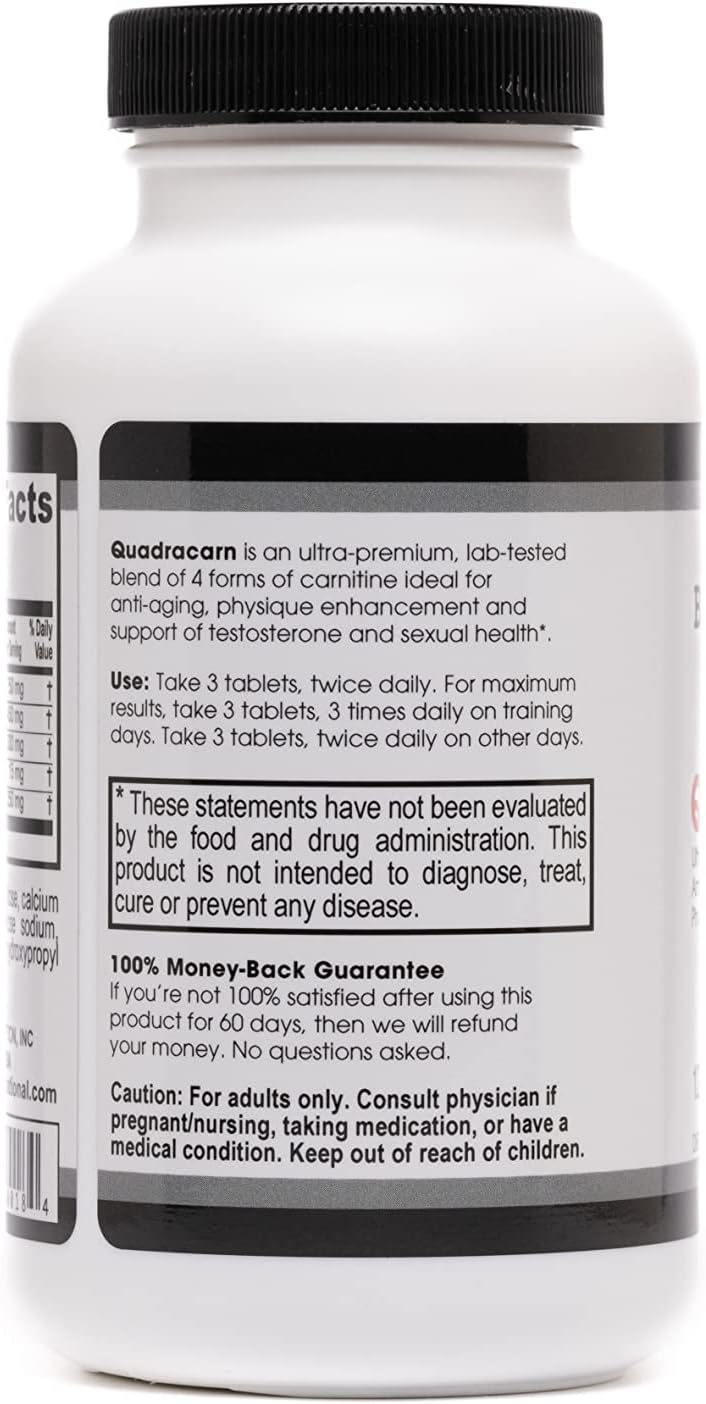 About this item Get back in shape, from head to toe*: Regular users report enhanced fat loss, increased lean muscle, an energy boost, better mood, testosterone, sexual potency, cognitive performance and more.* 4X as potent: Only Quadracarn contains 4 types of quality-tested carnitine plus Gymnema sylvestre, a botanical used to stabilize cravings for sweets.* (Great for keto.) Acetyl L-carnitine HCL, L-Carnitine, L-Carnitine L-Tartrate, and Propionyl L-Carnitine HCL* âAlphaâ at any age: Quadracarn is considered a must-have with men 35 yrs and older who want to âturbo-chargeâ their testosterone, lean muscle and performance, naturally.* Women love it, too: Beverlyâs unique formula will help you slim down, tone and tighten up your body faster than with diet and exercise alone, plus reap the rewards of anti-aging and sexual health benefits.* Quality and Integrity matter⊠thatâs why Beverly International is obsessed with using only the highest quality, research-based ingredients available. Delivering solid, safe and effective, superior quality supplements since 1967, no other supplement company can duplicate Beverlyâs more than five-decade history of delighted customers. If youâre serious about purchasing from a trusted, established brand, then that company is Beverly International. * âș See more product details,Get back in shape, from head to toe*: Regular users report enhanced fat loss, increased lean muscle, an energy boost, better mood, testosterone, sexual potency, cognitive performance and more,4X as potent: Only Quadracarn contains 4 types of quality-tested carnitine plus Gymnema sylvestre, a botanical used to stabilize cravings for sweets.* (Great for keto.) Acetyl L-carnitine HCL, L-Carnitine, L-Carnitine L-Tartrate, and Propionyl L-Carnitine HCL,âAlphaâ at any age: Quadracarn is considered a must-have with men 35 yrs and older who want to âturbo-chargeâ their testosterone, lean muscle and performance, naturally,Women love it, too: Beverlyâs unique formula will help you slim down, tone and tighten up your body faster than with diet and exercise alone, plus reap the rewards of anti-aging and sexual health benefits,Quality and Integrity matter⊠thatâs why Beverly International is obsessed with using only the highest quality, research-based ingredients available. Delivering solid, safe and effective, superior quality supplements since 1967, no other supplement company can duplicate Beverlyâs more than five-decade history of delighted customers. If youâre serious about purchasing from a trusted, established brand, then that company is Beverly International