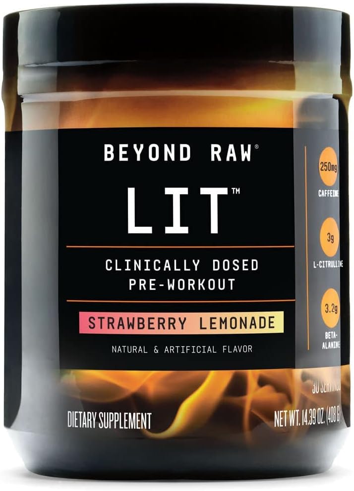 BEYOND RAW LIT | Clinically Dosed Pre-Workout Powder | Contains Caffeine, L-Citrulline, Beta-Alanine, and Nitric Oxide | Strawberry Lemonade | 30 Servings
