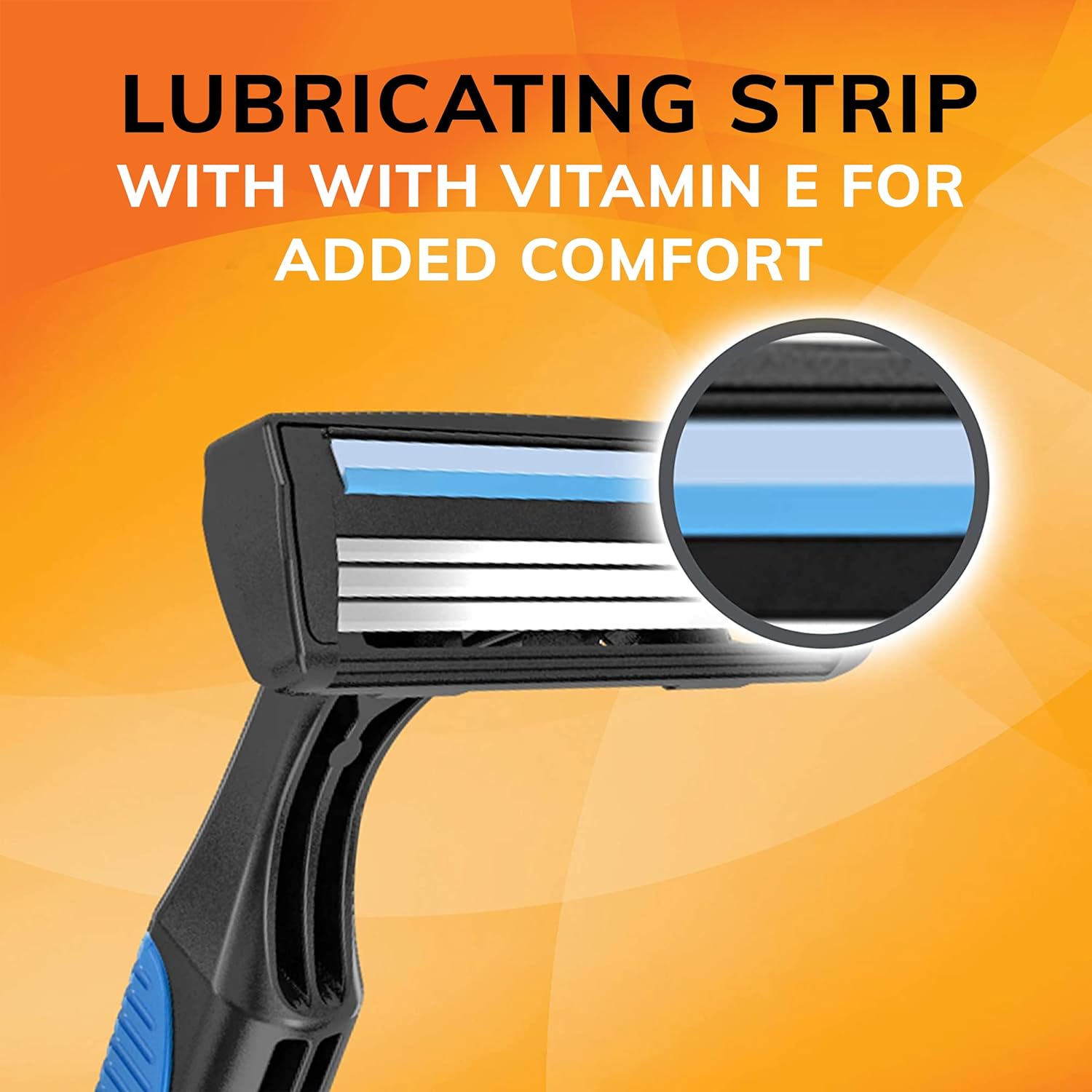 Three 8-count packs of BIC Comfort 3 Men's Shaving Razors, 24 mens disposable razors totalMen's disposable razors with three blades for a smooth, nick-free shaveMens disposable razors with a textured grip for precise shaving controlLubricating strip enriched with Vitamin E for added comfortMen's disposable razors for face and body shavingTreat yourself to an affordable, comfortable and soothing shave with BIC Comfort 3 Disposable Razors for Men. Created with convenience and value in mind, this 24-piece shaving razor for men set ensures that youâre always ready to tackle daily grooming while giving you an ultra-close shave that leaves your skin feeling incredibly smooth. The three blades on each razor help you achieve an effortless, quick shaving experience without having to break the bank. These mens disposable razors have a lubricating strip with Vitamin E for added comfort with each stroke, minimizing razor friction for a nick-free shaveâmaking them ideal razors for shaving for all skin typesâeven sensitive skin. The textured handle provides a firm, comfortable grip and exceptional precision for extra confidence while youâre shaving with wet hands or grooming tricky areas, like under the nose. Plus, with their lightweight, streamlined design, you can easily toss a disposable shaving razor into gym bags or travel kits, so youâre always ready for touchably smooth skin. Get rave-worthy shave with a save-worthy value when you choose our BIC Comfort 3 Disposable Bulk Razors Set for Men