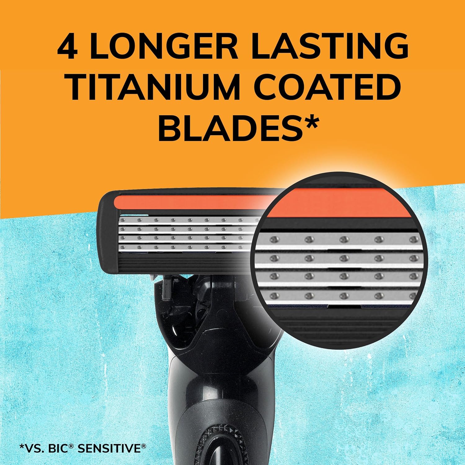 BIC Flex 4 Refillable Razors for Men, Long-Lasting 4 Blade Disposable Razors for Sensitive Skin, 1 Handle and 8 Cartridges, 9 Piece Shaving Kit
